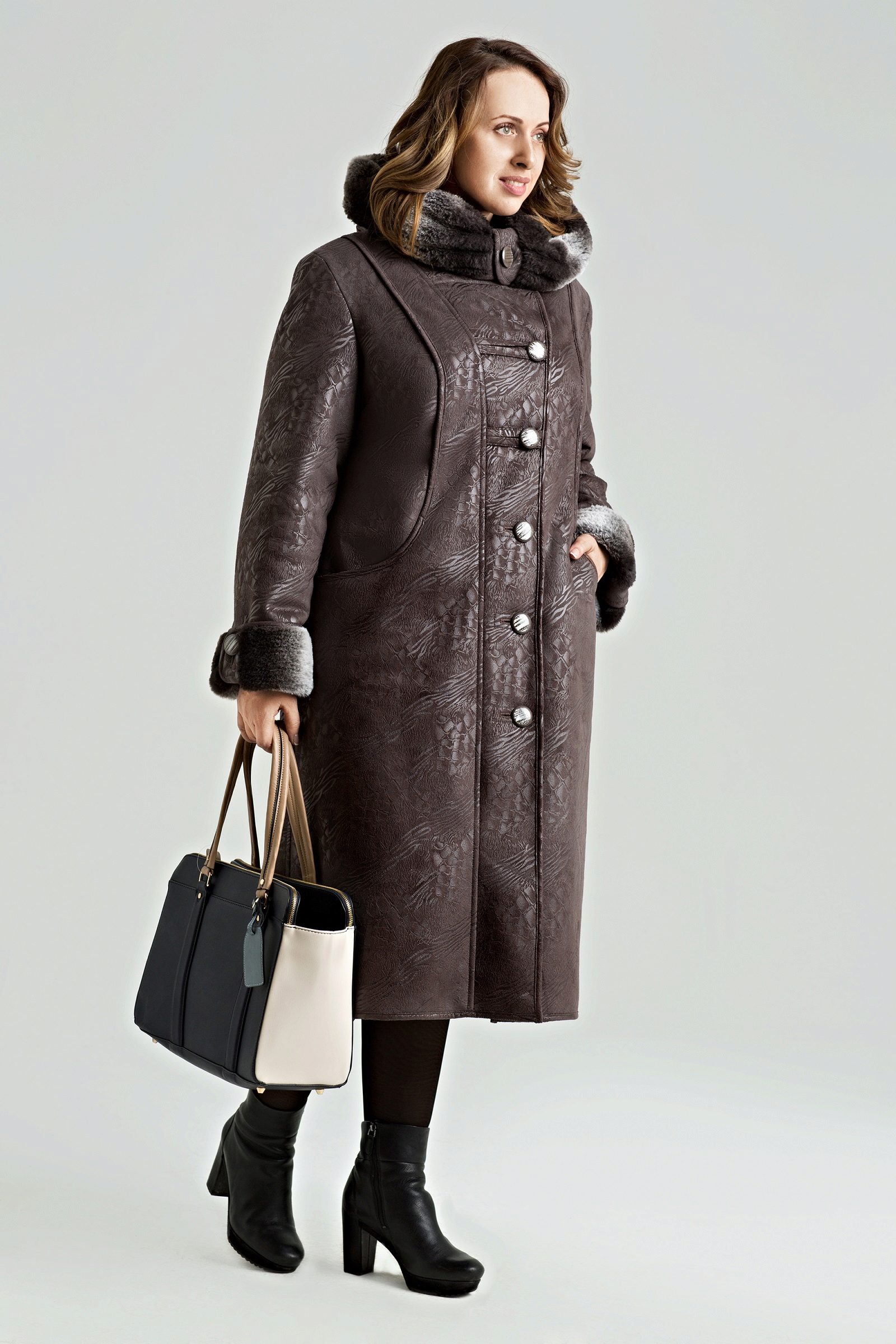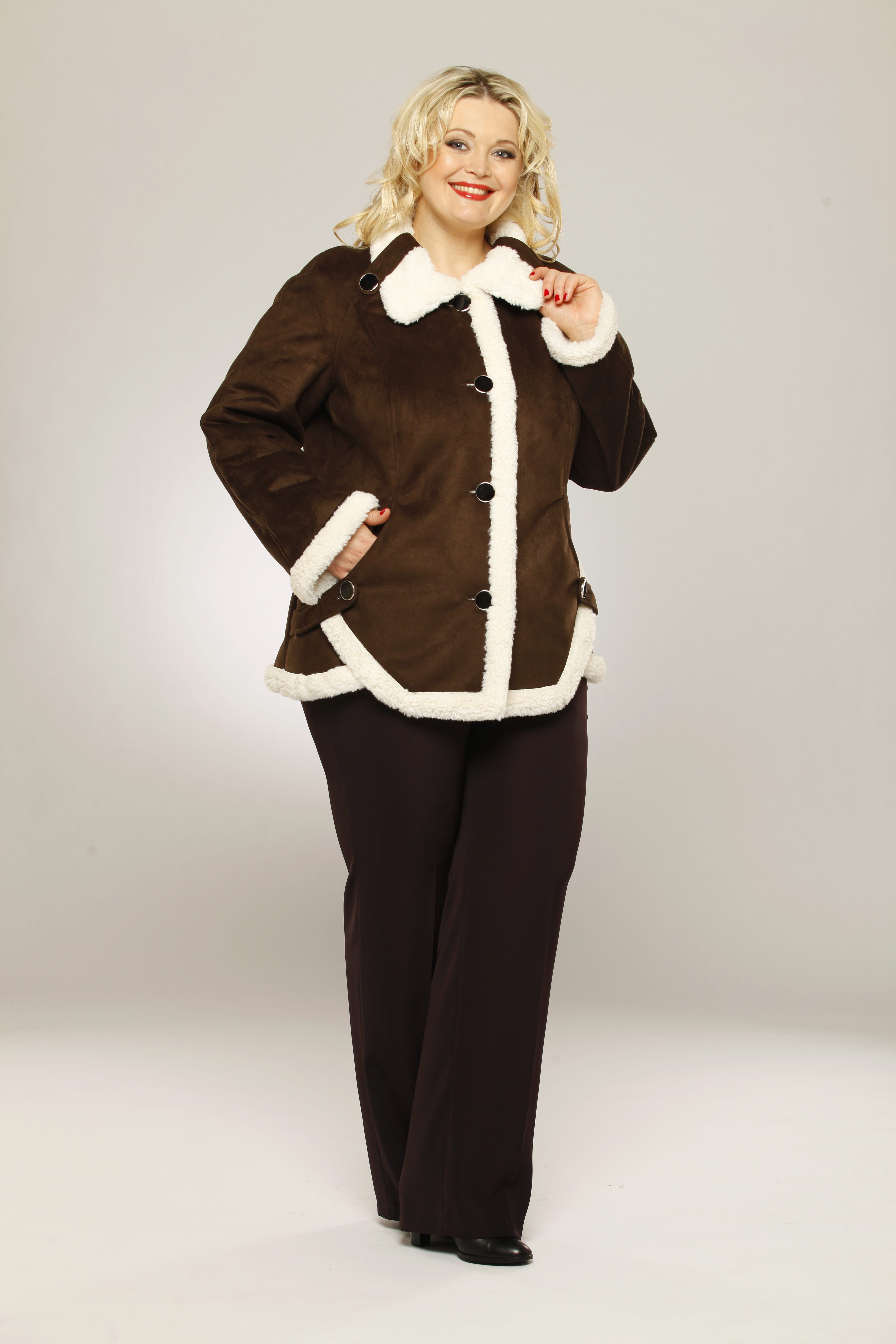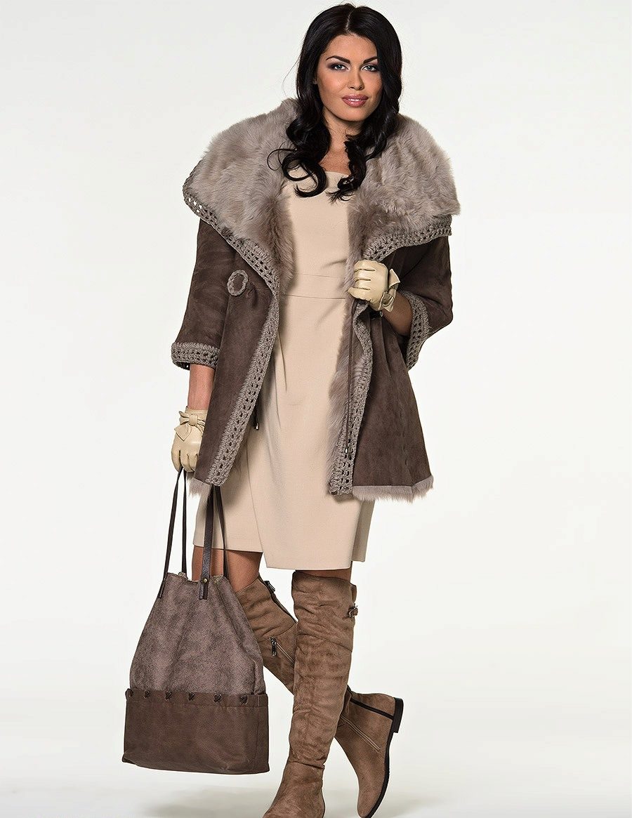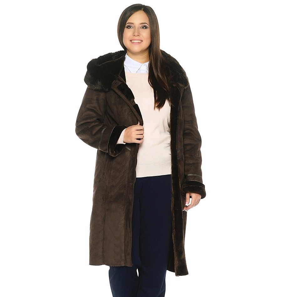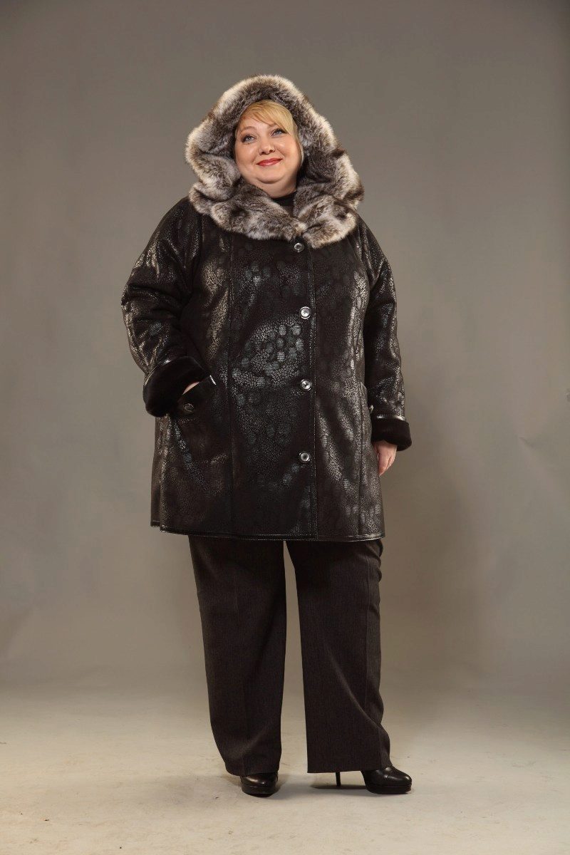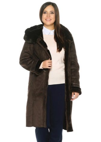 - big sizes for full ones - there are both classic models suitable for ladies with shapes (medium length, fitted, dark colors, with a belt), and trendy sheepskin coats for oversized.