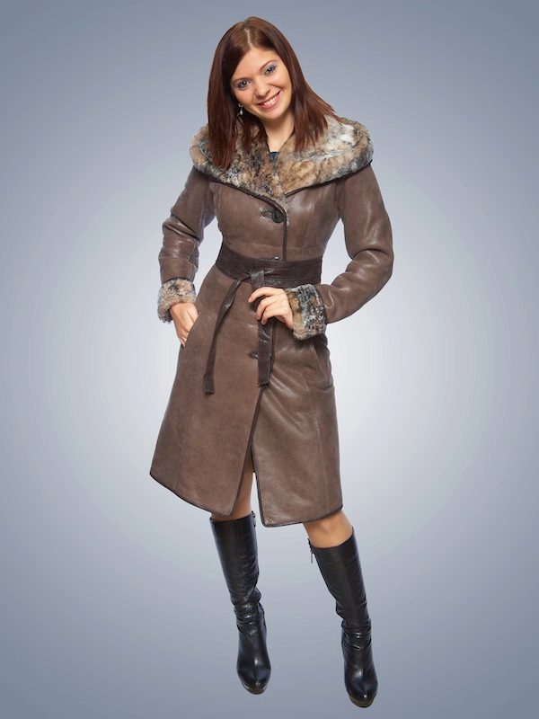 - Winter - heavy sheepskin coat with warm fur inside; it warms even in cold; the advantage will be a hood with trim and pockets on the product to hide hands; Popular long winter options, covering their feet from the cold.
