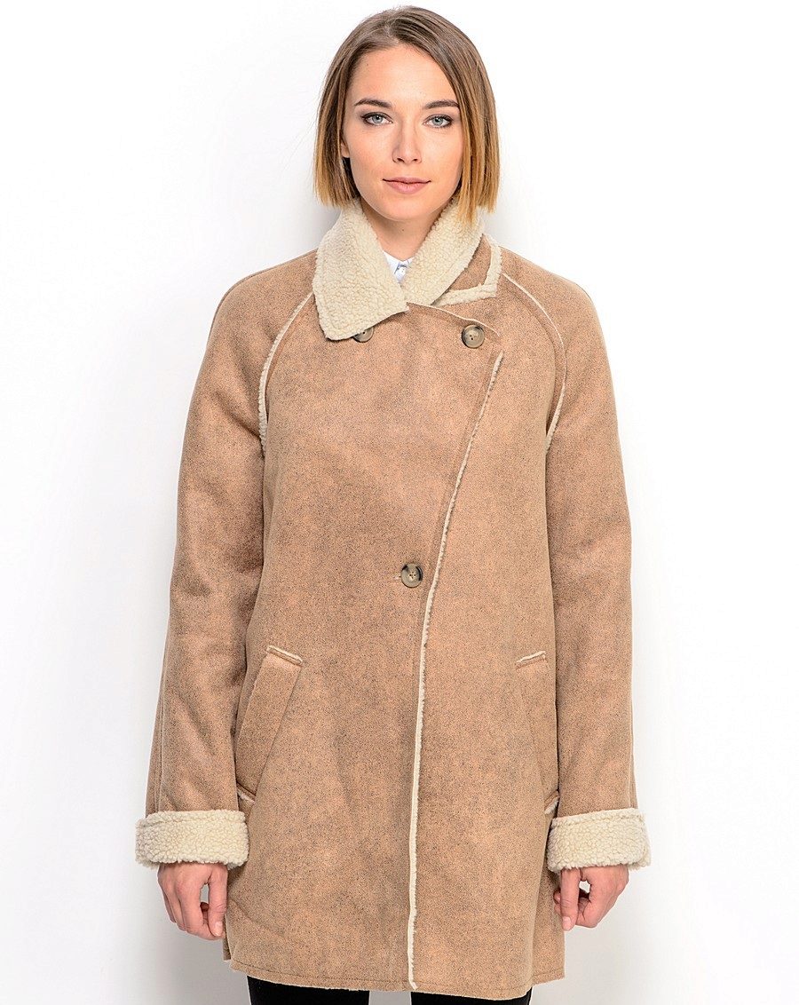 Artificial sheepskin coats look stylish and elegant, but have the advantage: they are not afraid of precipitation.