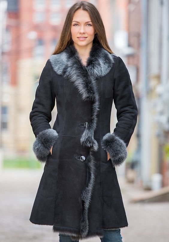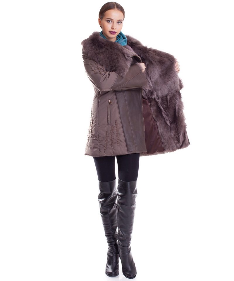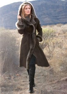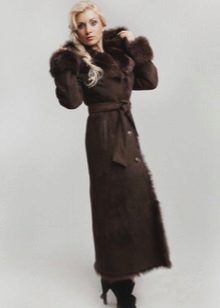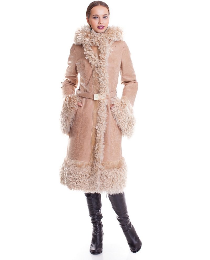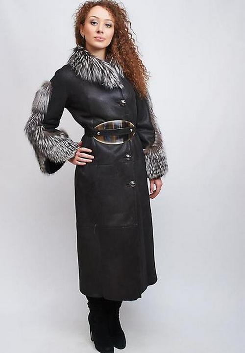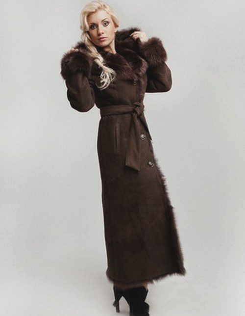 Lovers of status clothing will surely look after a long leather or suede sheepskin coat to the floor. Luxurious fur décor will give this product a particularly rich look. Attractive look options where the fur adorns the entire hem of a sheepskin coat.