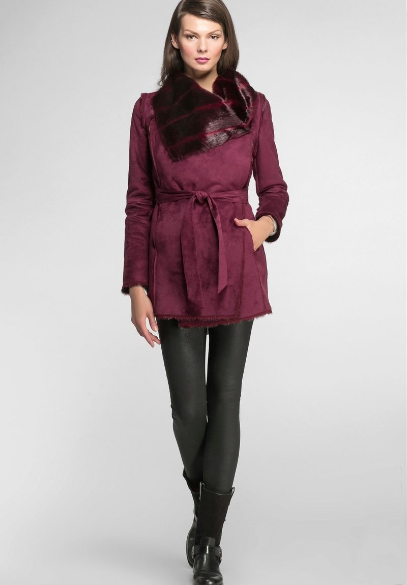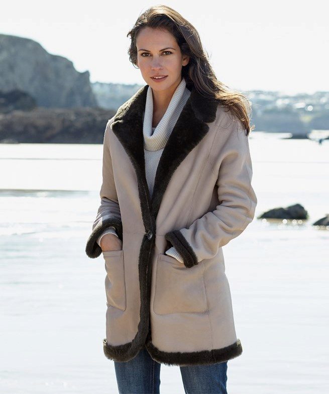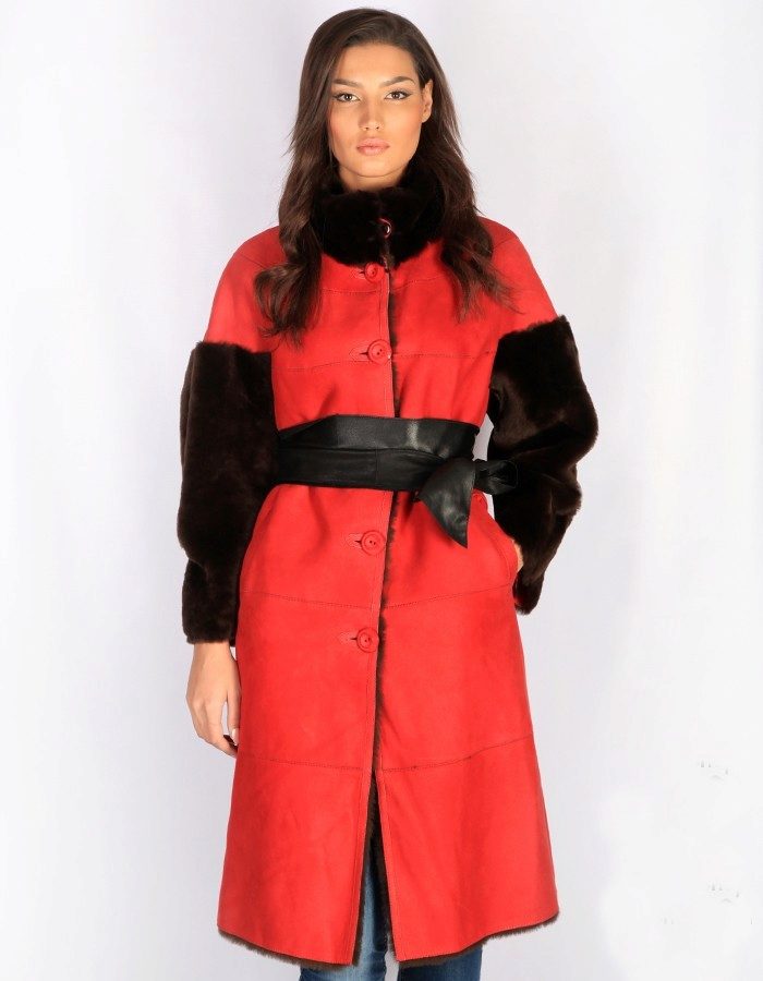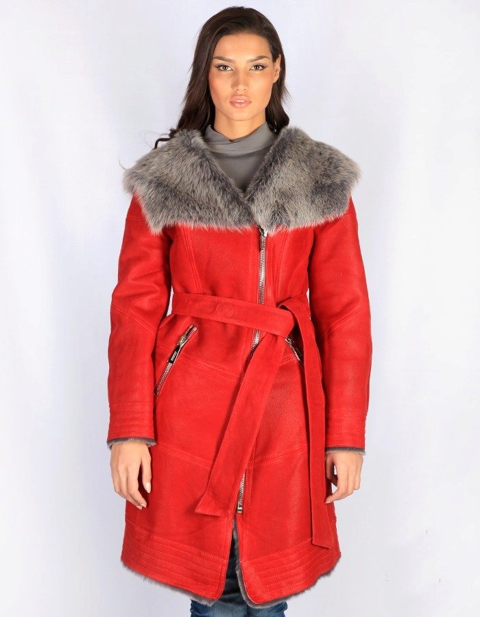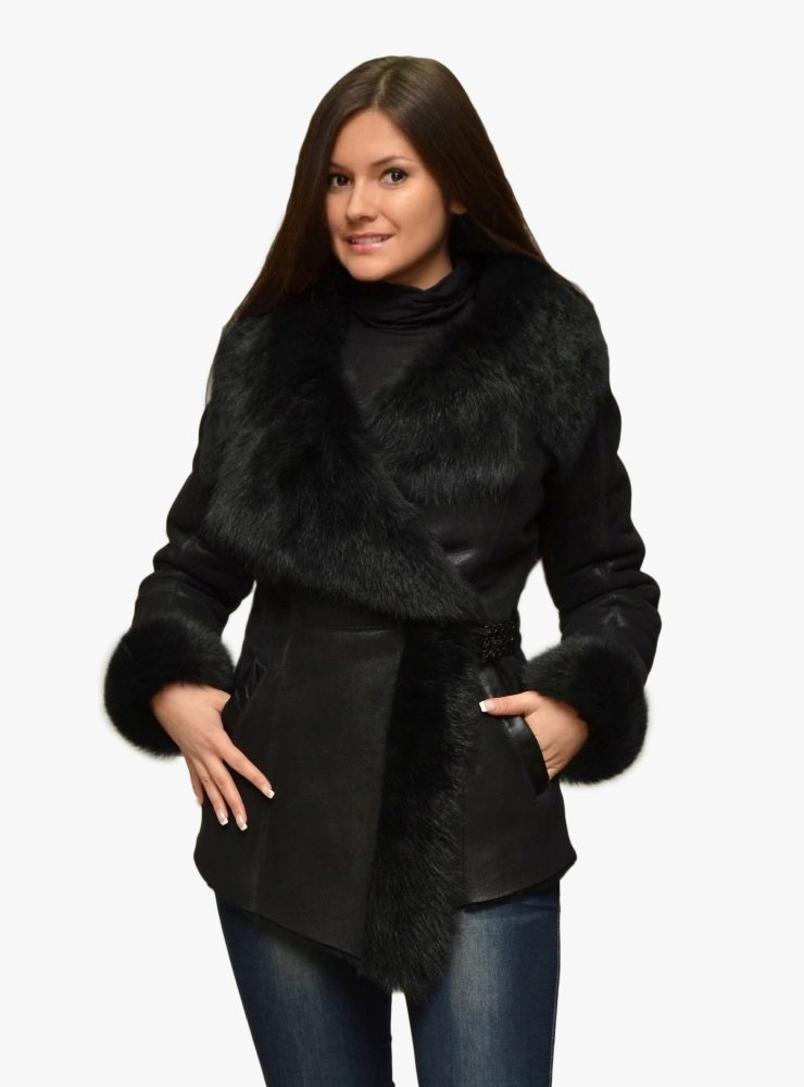 Lovers of status clothing will surely look after a long leather or suede sheepskin coat to the floor. Luxurious fur décor will give this product a particularly rich look. Attractive look options where the fur adorns the entire hem of a sheepskin coat.