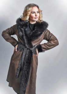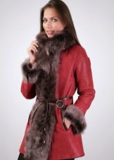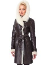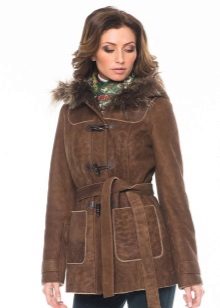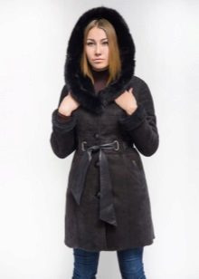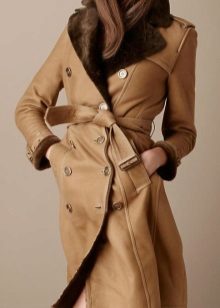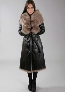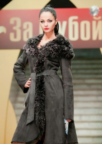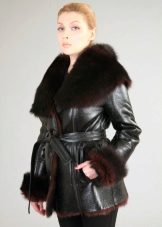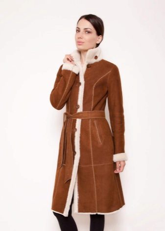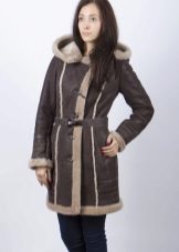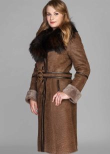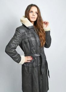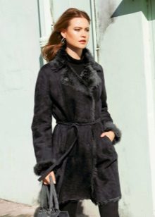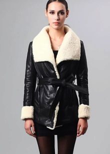 The belt on the fur side of a sheepskin coat is a leather narrow strap in the form of a rope, tied with a knot or a bow. This model will be a godsend for many lovers of sheepskin coats, because the result is two complete models of sheepskin coats.
