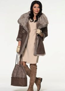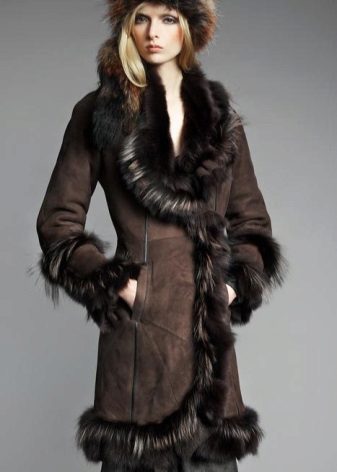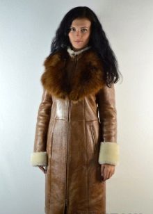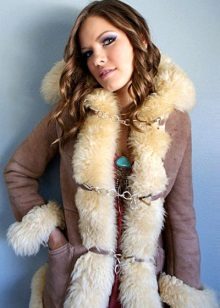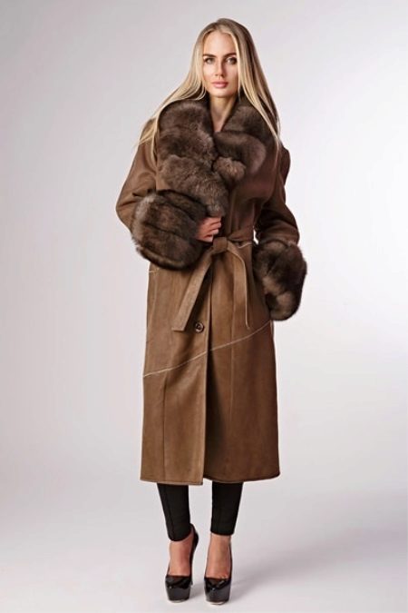 For the winter version, many will like double-sided models consisting of a sheepskin coat and a fur one. Or model on a sheepskin from within, and from above covered with glossy skin.Such models are very popular with those who love an active lifestyle because of practicality, durability, excellent heat-saving qualities and lightness. These sheepskin coats can be worn on either side.