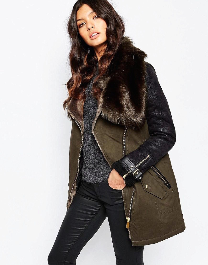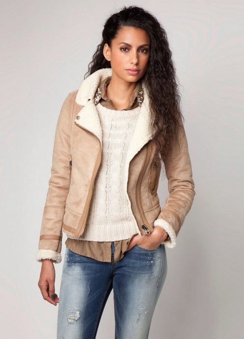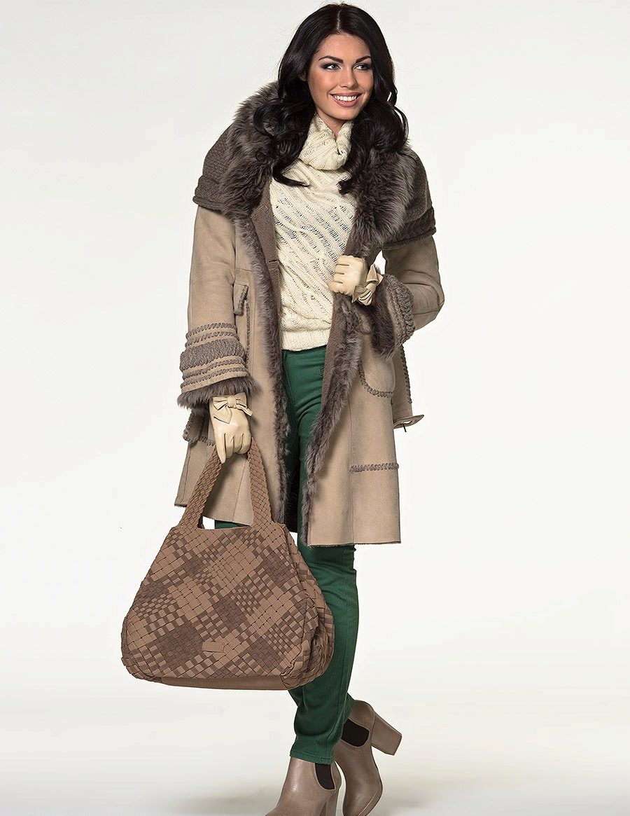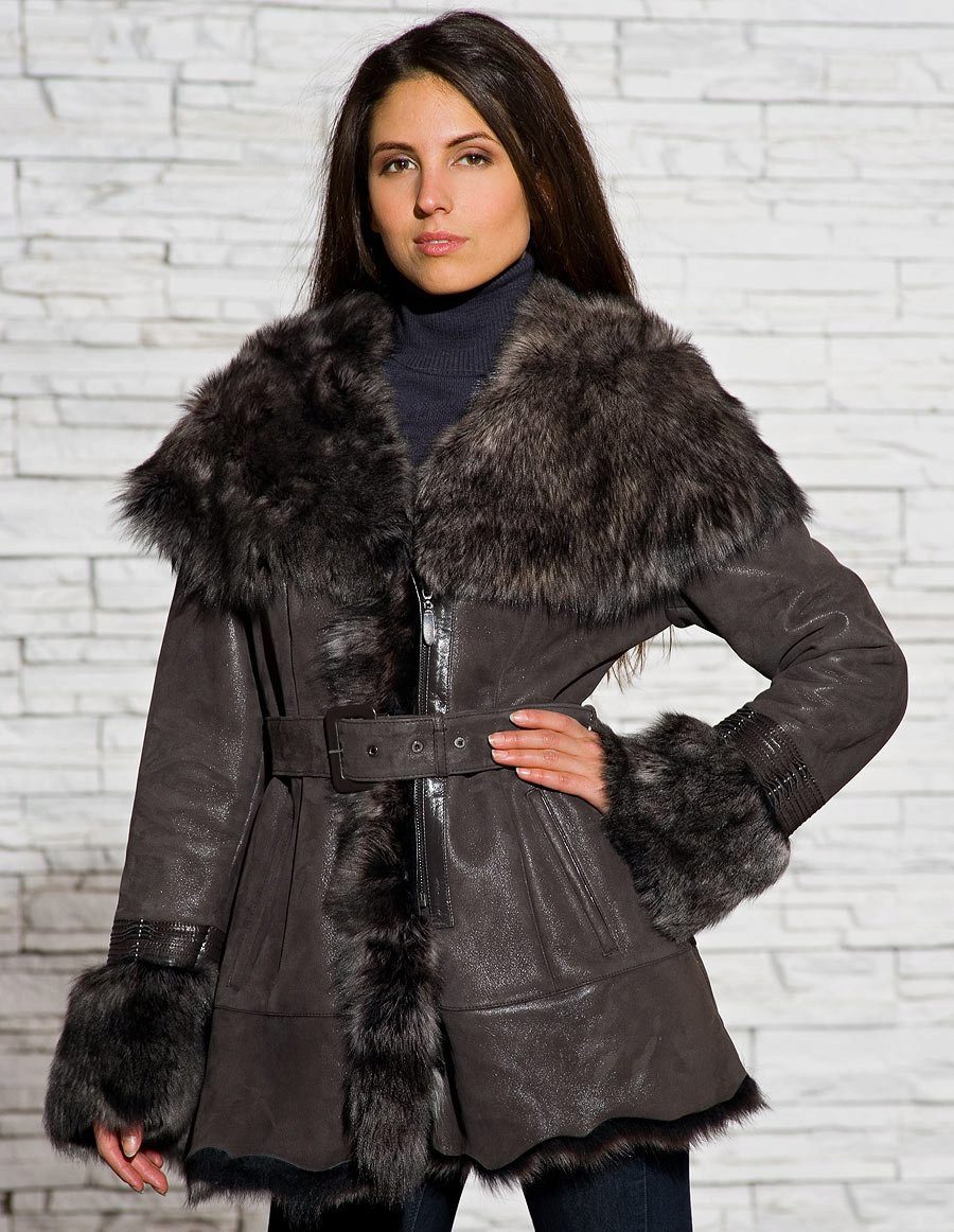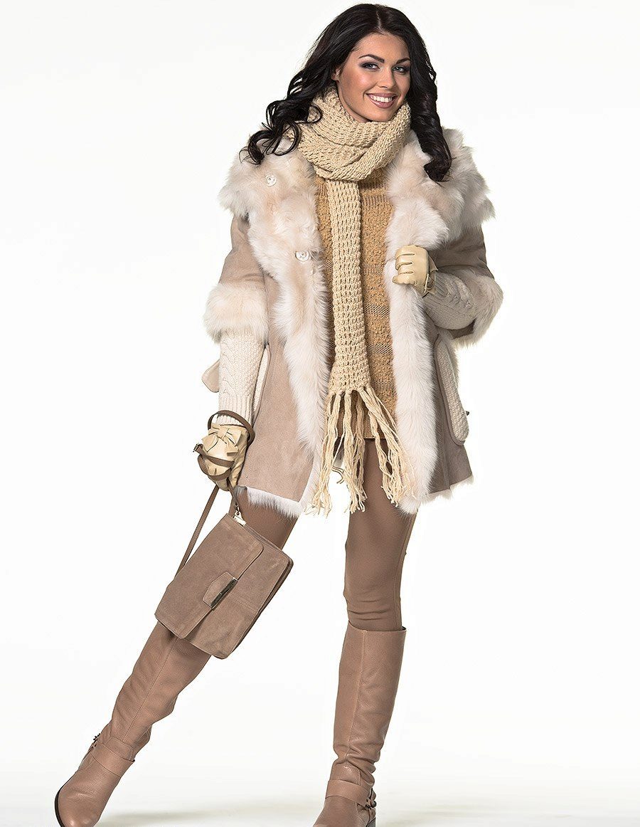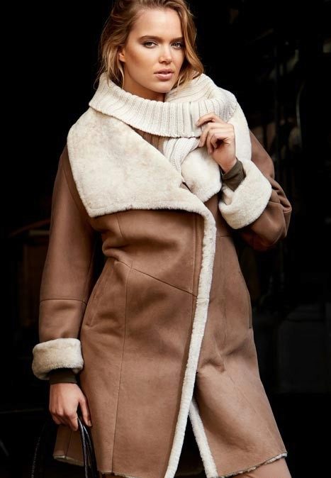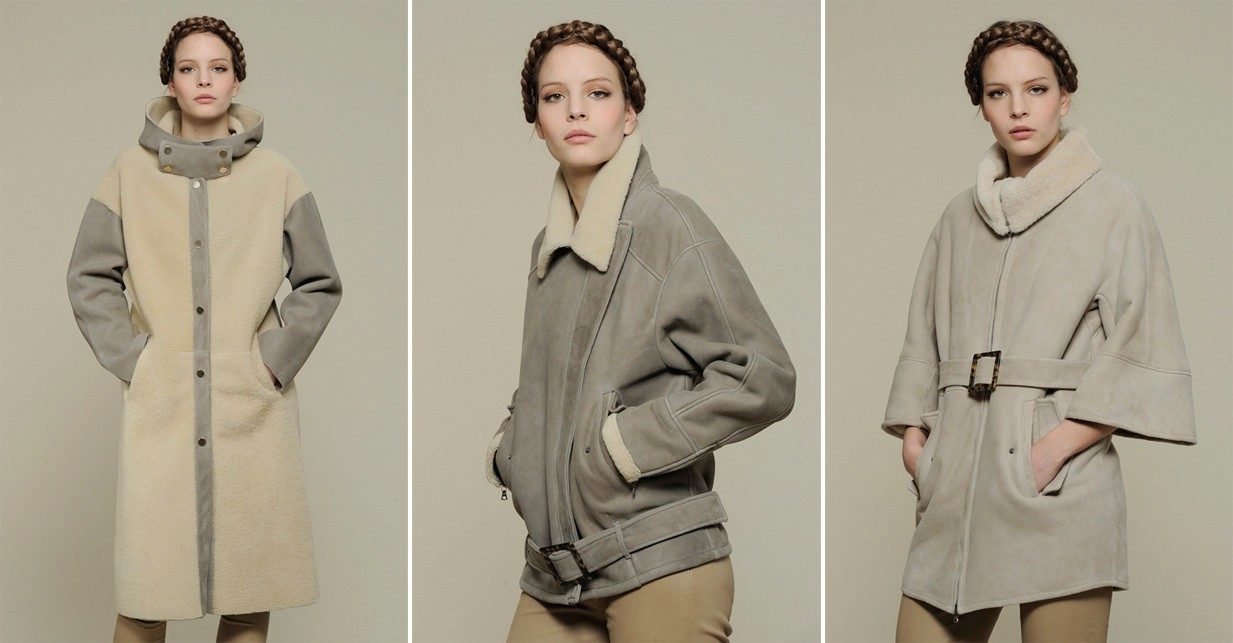 Models of straight cut to mid-thigh style “raglan” or oversized are also included in the sheepskin fashion.