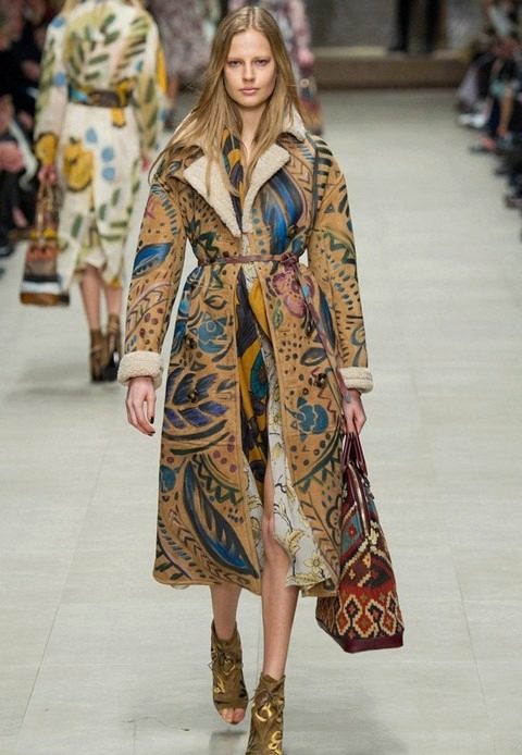 Recent seasons are drawings and patterns on a sheepskin coat.