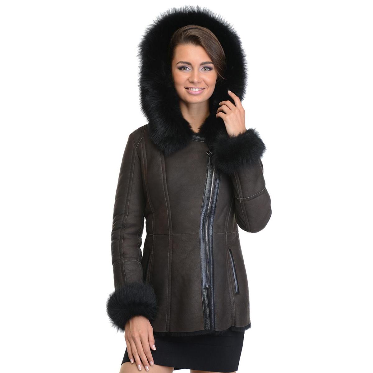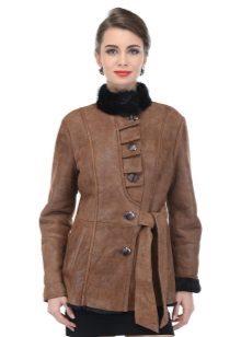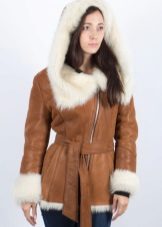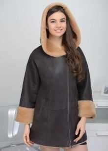 Shortened models can have a different cut - straight, A-shaped, trapezoid, etc. For finishing often use long-haired fur, such as a raccoon, fox or arctic fox. The shortest sheepskin coats in the military style are the most popular, which are complemented by a voluminous hood or a turn-down collar.
