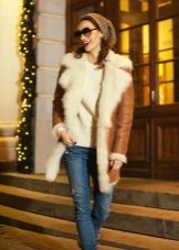 Today, the trend of simple colors, for example, a stylish combination of white and black in one model of sheepskin coat.