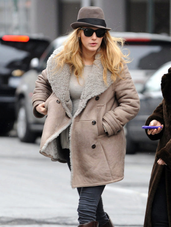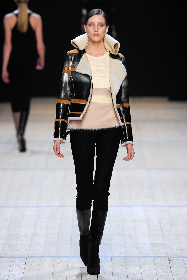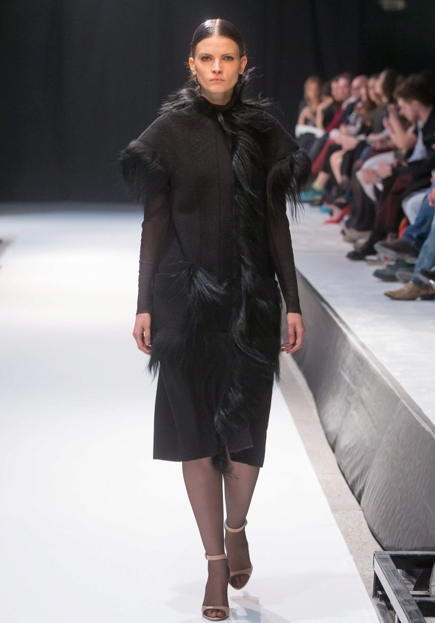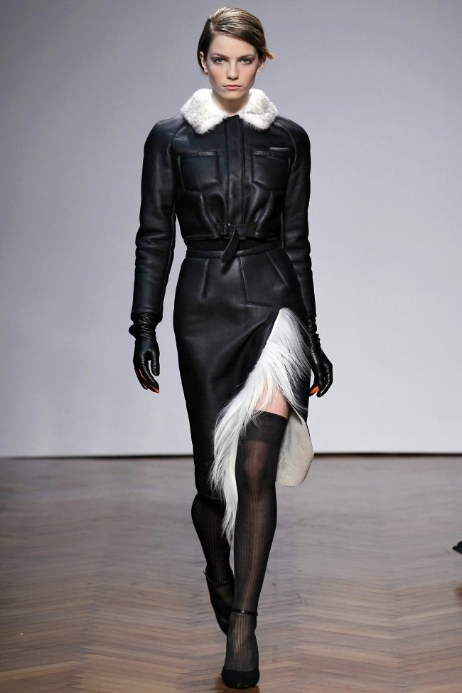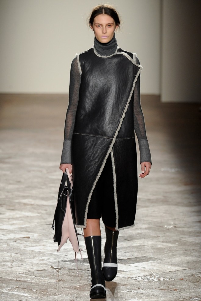 Short sheepskin coat looks beautiful in tandem with a dress.