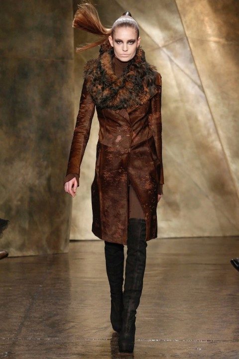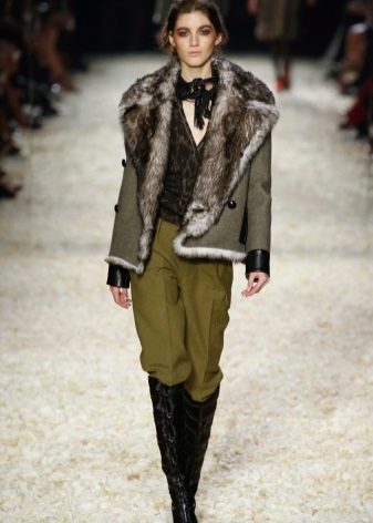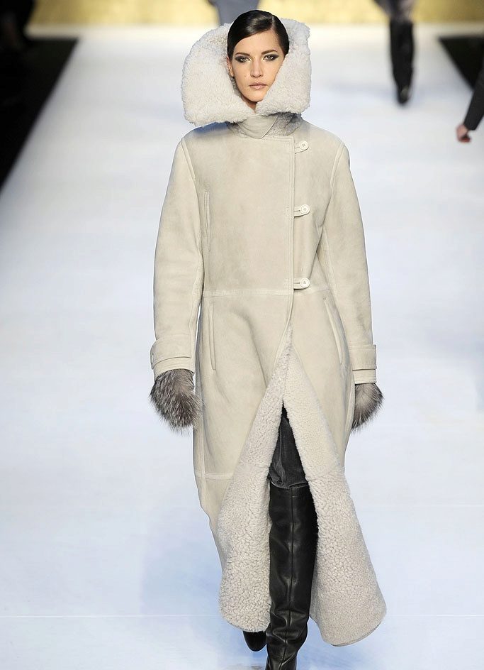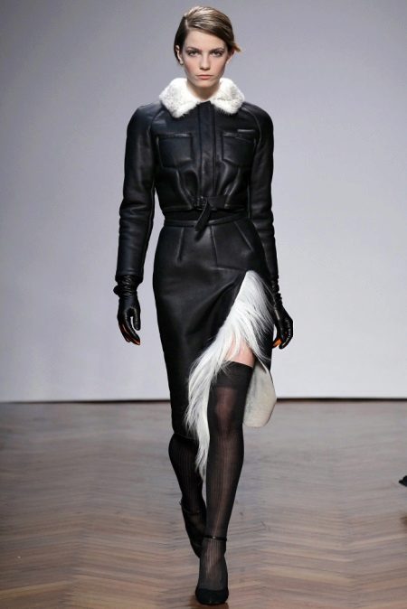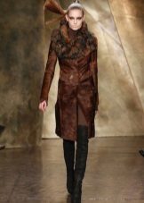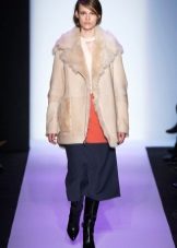 Sheepskin coats with fur look impressive and stylish. Typically, for the decoration of outerwear designers use luxurious, lush fur. To emphasize the beauty of the upper body, to make it visually more voluminous, it is necessary to pay attention to models with a fur collar.