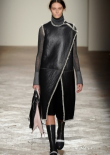 Young people often have a rebellious spirit. They seek to break the rules, and this applies to the choice of clothing. Designers have taken into account this feature and offer unusual models with leather inserts. This sheepskin coat is ideal for the embodiment of rocker style.