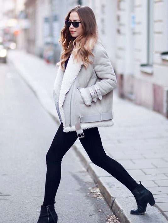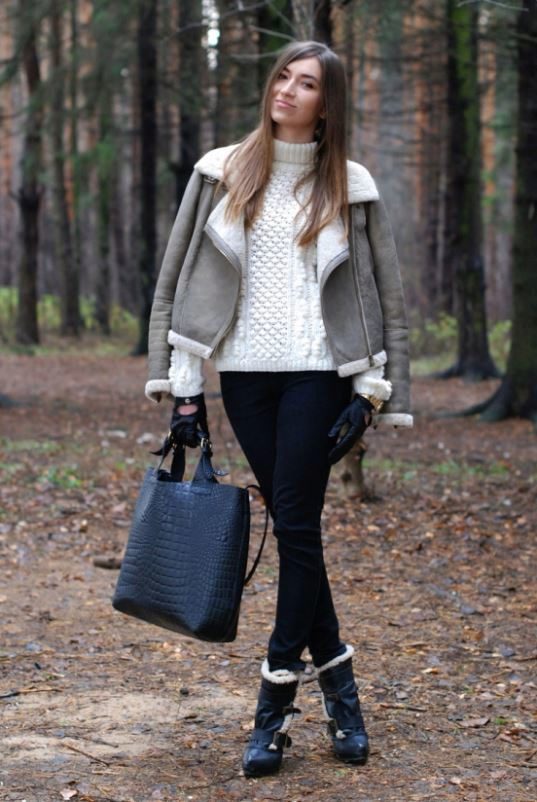 Sheepskin coat-jacket has become an integral part of the autumn wardrobe of many girls. Textured models are in great demand. They allow you to create a bright, bold image, and they can be combined with skirts and dresses.
