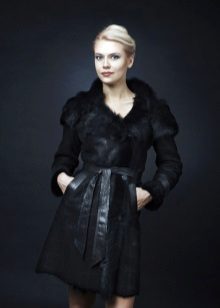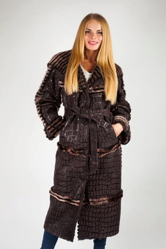 Elongated models will create a sophisticated feminine look. Outwardly, the silhouette resembles a demi-season coat, but dubbed skin warms much better. A separate option - thin sheepskin coats without fur, which are worn in the fall and spring. They are additionally impregnated with a special composition that protects the surface of the product from moisture.