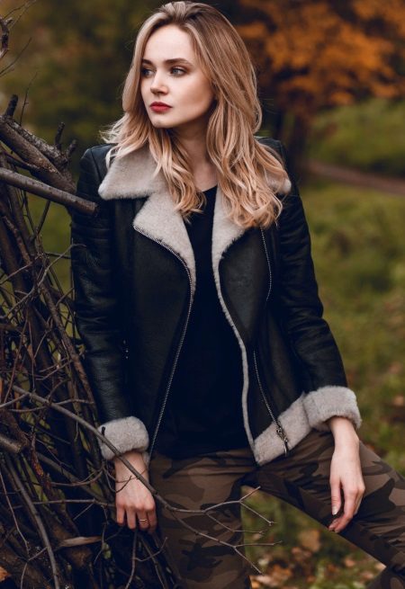 A simple cut and laconic color (most often “pilots” are black or brown) allow young ladies to wear this jacket “in the feast and in the world”, while remaining stylish, but at the same time feeling comfortable.