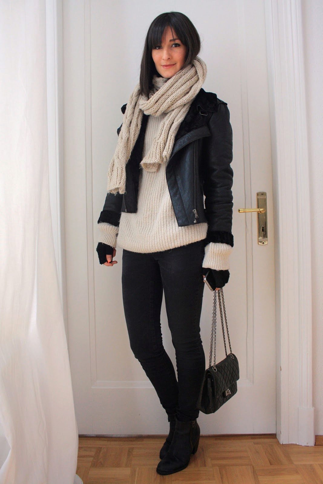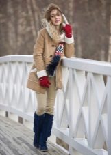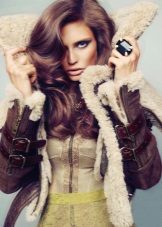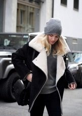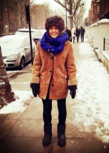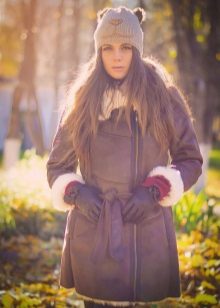 Stylists advise to complement the look, which is based on a sheepskin coat, gloves, as well as bags made of suede, wool or leather. You need to be careful with handbags - despite its light weight, the sheepskin coat is quite massive, clutches and bags on a chain will not be very elegant with it.
