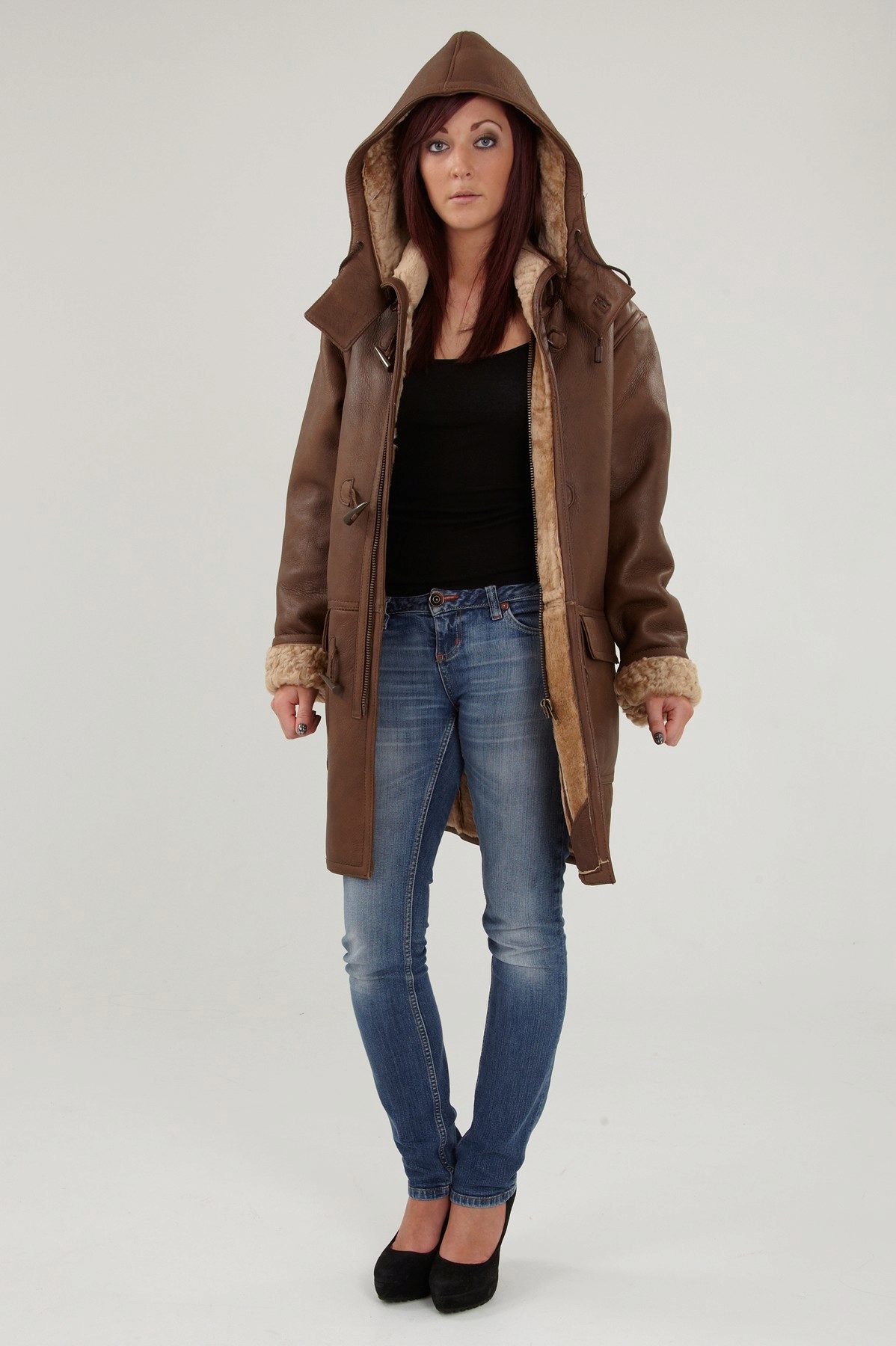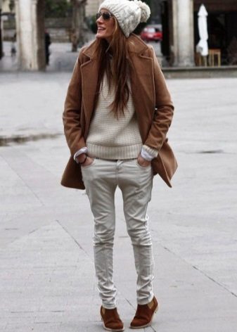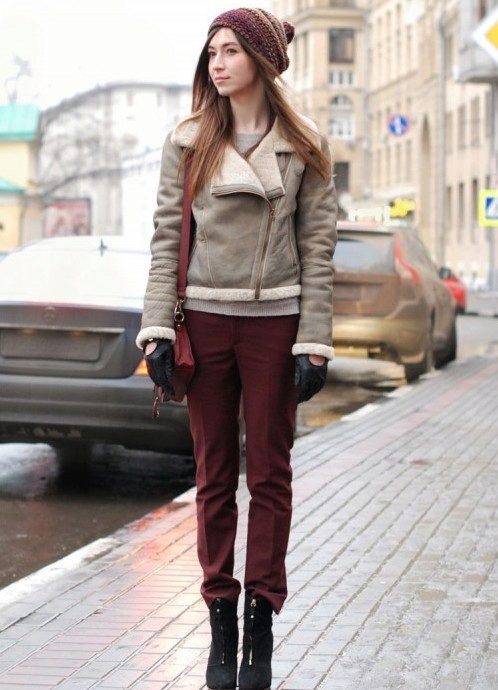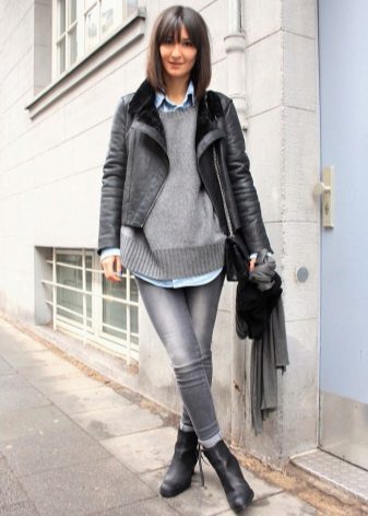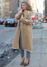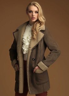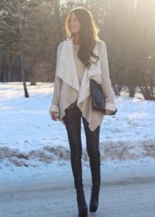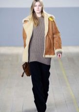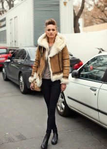 Models trapezoid cut Look great with classic denim jeans. However, almost all styles and types of sheepskin coats with them, except perhaps monochromatic black ones, which are supposed to be worn with a belt.