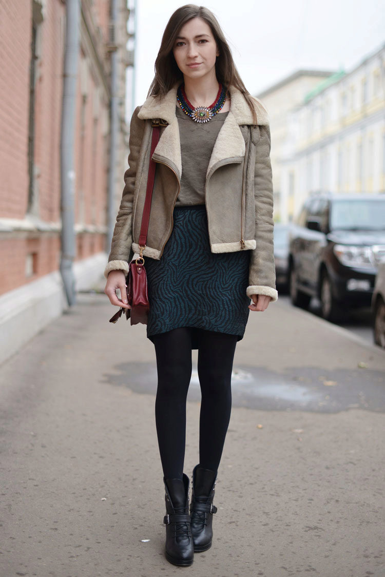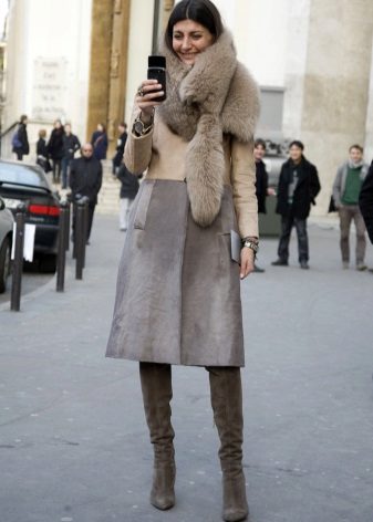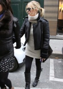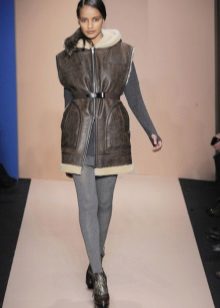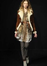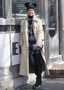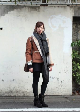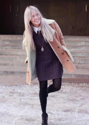 They can wear a dress and a skirt with tight tights or even leggings. Forming an image on the basis of an elongated sheepskin coat, one should always remember that even after its removal there should be a harmonious and effective look.