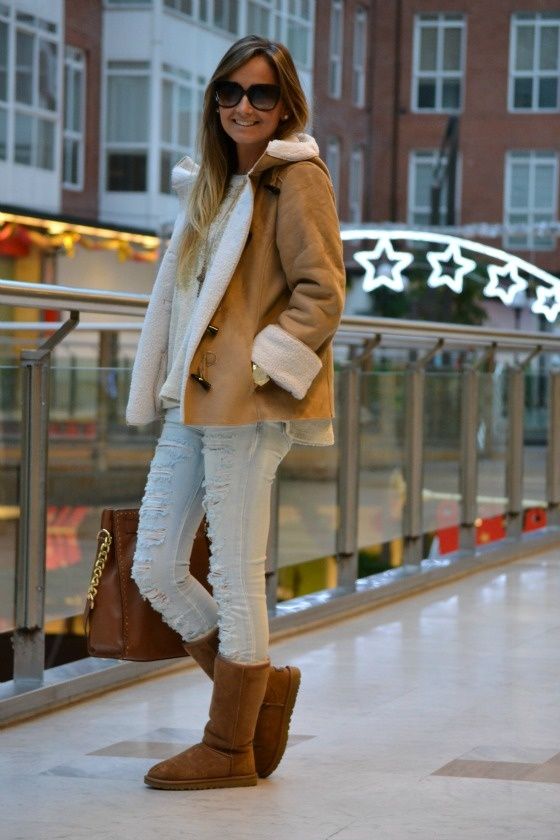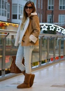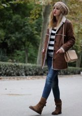 To fitted sheepskin coats It is best to put on high-heeled boots - this can be either a “shot glass” or a stud. But short boots-boots will ideally go to sheepskin coats of the avtoledi style. For models inspired by ethnic motifs and boho aesthetics, stylish ladies are recommended to add uggs or suede boots.
