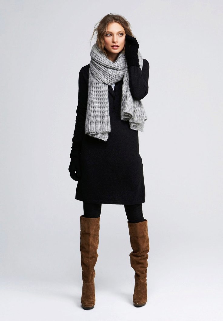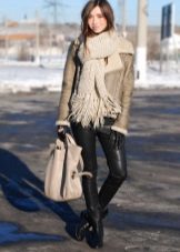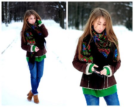 Wide woolen or cashmere stoles will add elegance to any woman, especially if you put them on over the sheepskin folded several times. But for everyday use not only scarves, but also scarves.