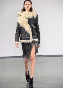 Strict skirt "to the floor" perfectly complement bright sheepskin coat made in the ethno key or in the boho style. For more classic variations like sheepskin coats, in turn, the tartan skirt will go perfectly. And the very motley and short models of wool skirts should be worn with fitted sheepskin shorter length.