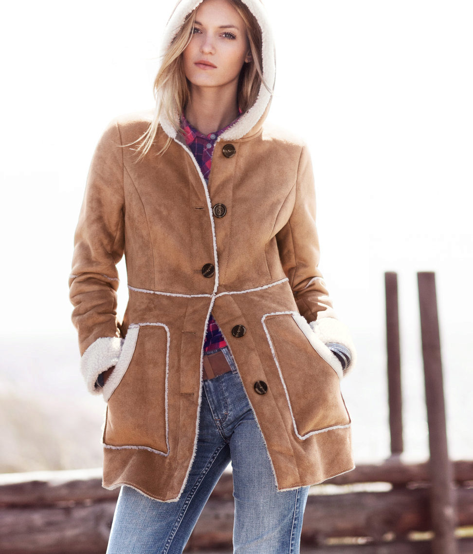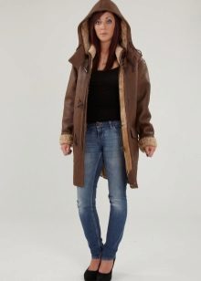Ladies who look after their sheepskin coat with a hood can even refuse a hat or cap - to protect against cold and wind, everything is already provided for in this model.