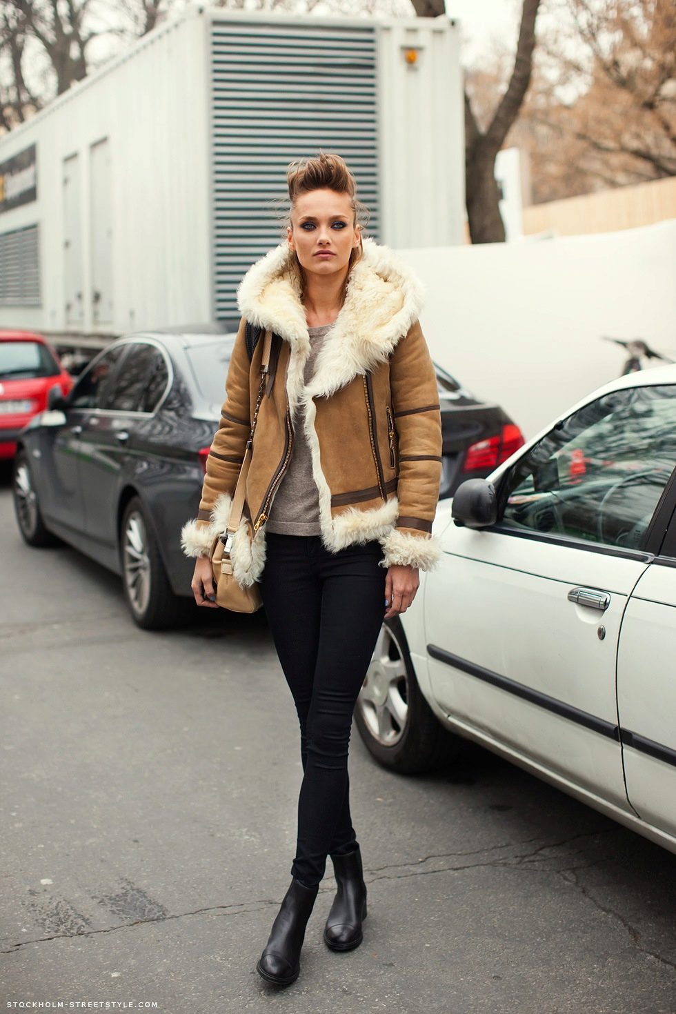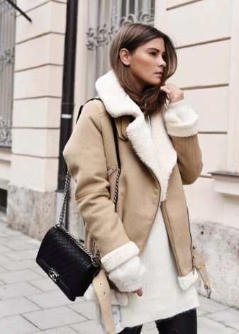 Due to its universal texture, sheepskin coats can boast a more diverse range of styles and models than those of coats. What are just styling under aviator jacket or products sewn in biker clothing! Each of these coats can be turned into a real pearl of women's wardrobe, if you tastefully approach the formation of appearance.