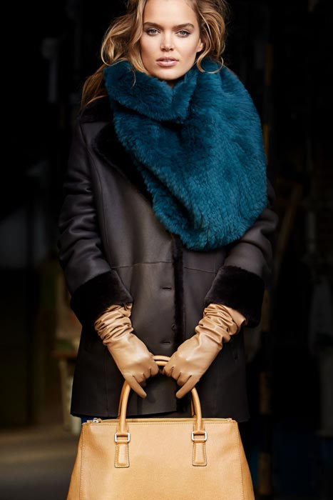 Loose scarves, becoming every year more and more popular both among fashion house designers and lovers of comfortable and stylish clothes, are recommended for owners of fitted models of sheepskin coats. At the same time, the snood can be worn both under the outer garment and on top of it.