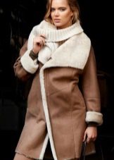 Women with an hourglass figure should choose a sheepskin coat with a belt and emphasize the waist. Women with such a figure can safely choose a stylish model of a sheepskin coat with a smell. The original model - the dressing gown is fixed by a belt and does not have a fastener.