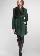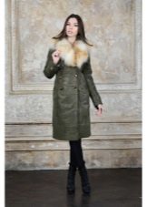 The wide sides of the sheepskin coat are tied down and fixed with the help of a wide belt. In this model, the emphasis is on the waist, and a pointedly thin waist in turn draws attention to the luxurious feminine hips and breasts.