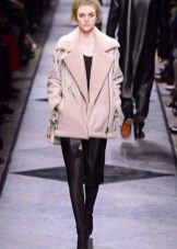 Model oversize with shoes will make a harmonious image. A cropped sheepskin coat with boots looks not very personable, but such a hooligan style will suit young ladies.