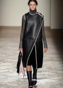 Sleeve length is always under the scrutiny of designers. Sheepskin coats with sleeves three-quarters, with short sleeves and completely sleeveless are found among demi-season models.