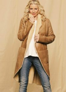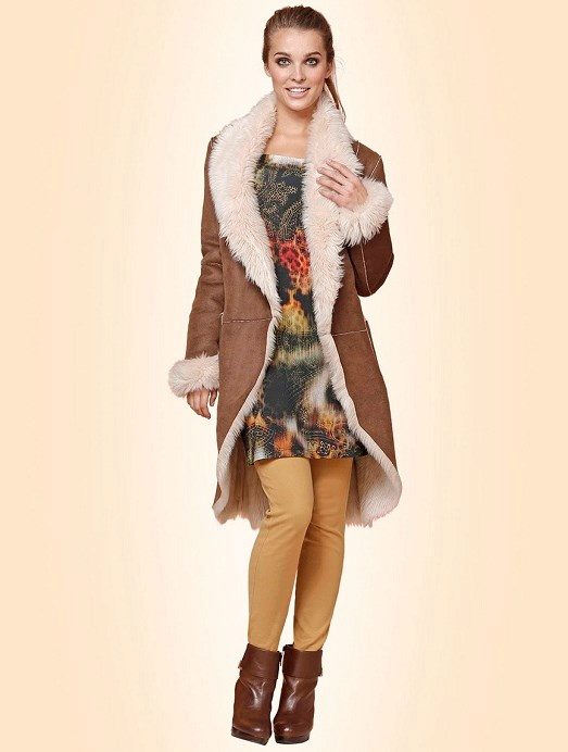 On fashionable catwalks and in shops you can find sheepskin coats not only of sheepskin, but also of suede, jeans, knitted fabrics and various other materials.
