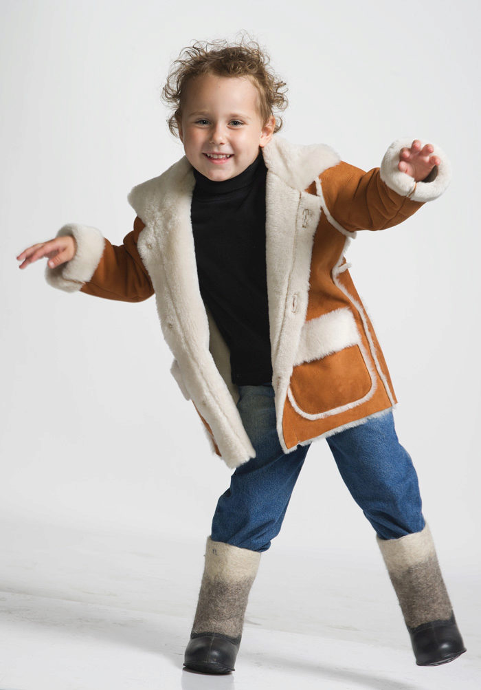 For children, it is recommended to choose a sheepskin coat from natural and high-quality materials. The sheepskin coat should not be too heavy, and the cut of the product should give the child freedom of movement.