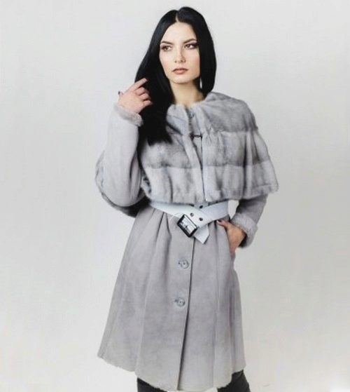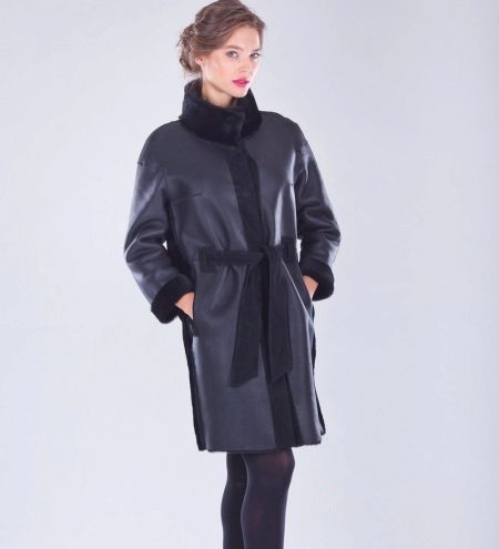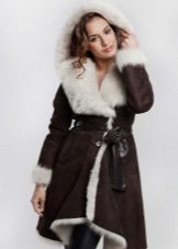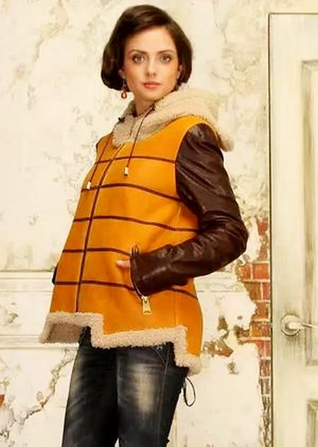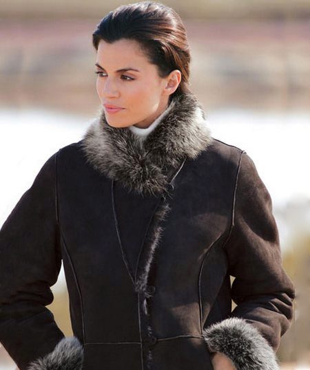 Often sheepskin coats sewn from sheepskin are trimmed with the fur of another animal. Sheepskin coats with mink trim look very elegant. The variant of a sheepskin coat with a hood either completely or on the edge trimmed with a fox-necked fox and high cuffs of the same fur is also effective.