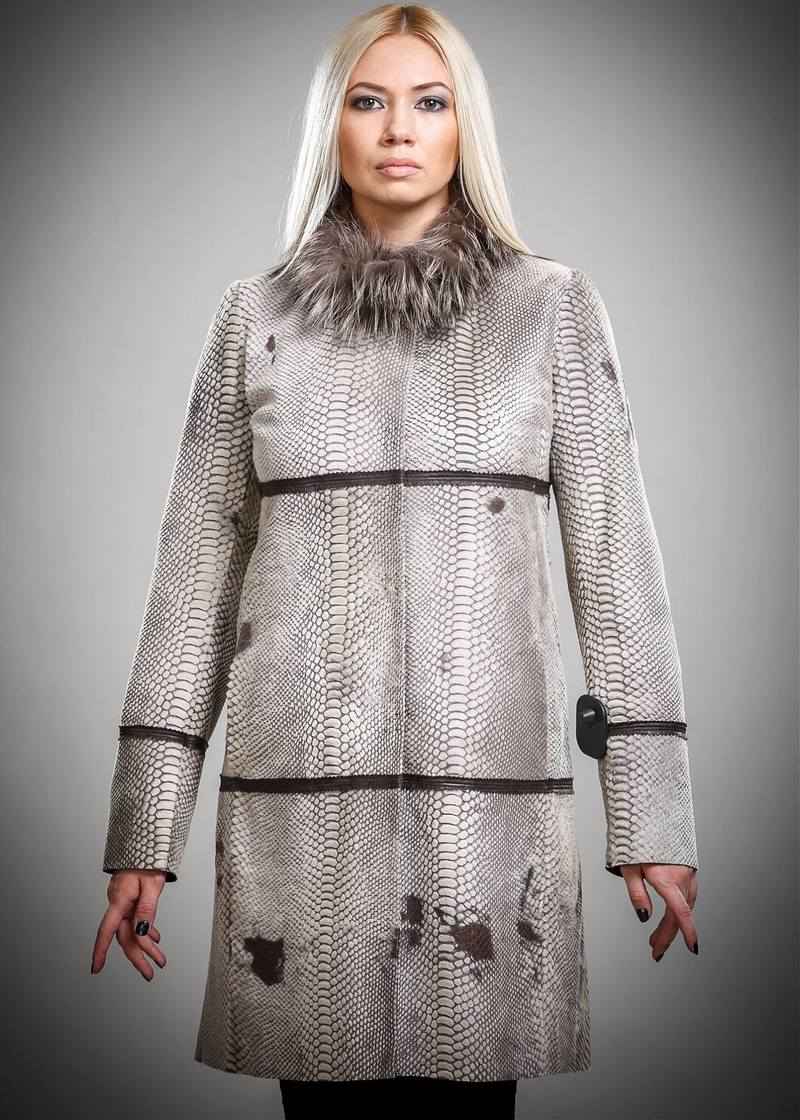 Perfectly look lightweight sheepskin dressing "reptile" with a luxurious long collar of fox, silver fox or raccoon. More economical and, unfortunately, less durable, but still very beautiful model of sheepskin with detachable stand-up collar and the same cuffs of rabbit fur.