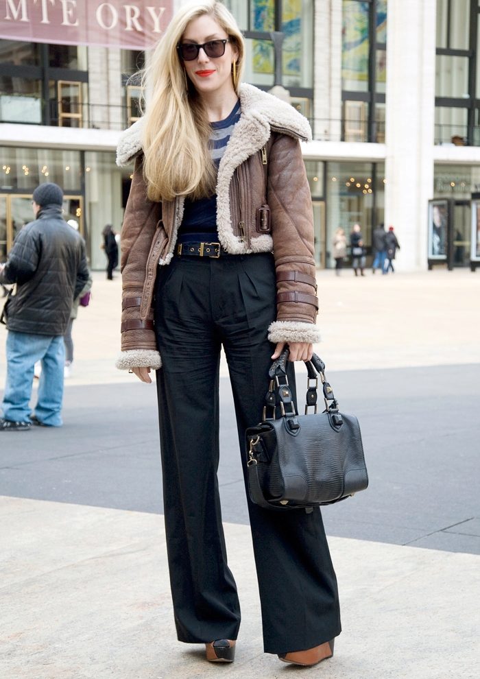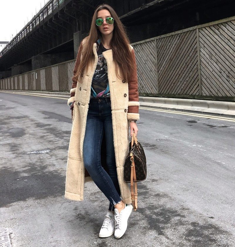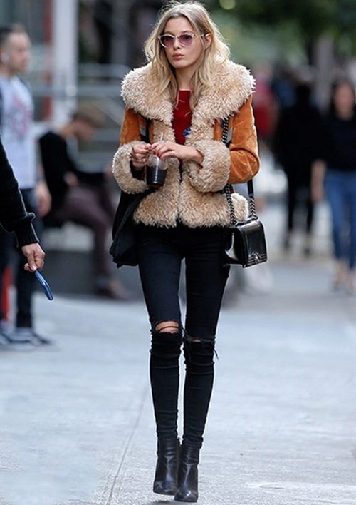 Even in our century of a completely tolerant fashion, welcoming a mixture of styles, wearing an elite lynx fur coat with jeans is still not comme il faut, and such a shocking can only be allowed for celebrities, already famous for the extravagance of both clothes and behavior. Sheepskin coat is a much more democratic variant of outerwear than a fur coat (although sometimes not less expensive), allowing more loose and relaxed combinations.
