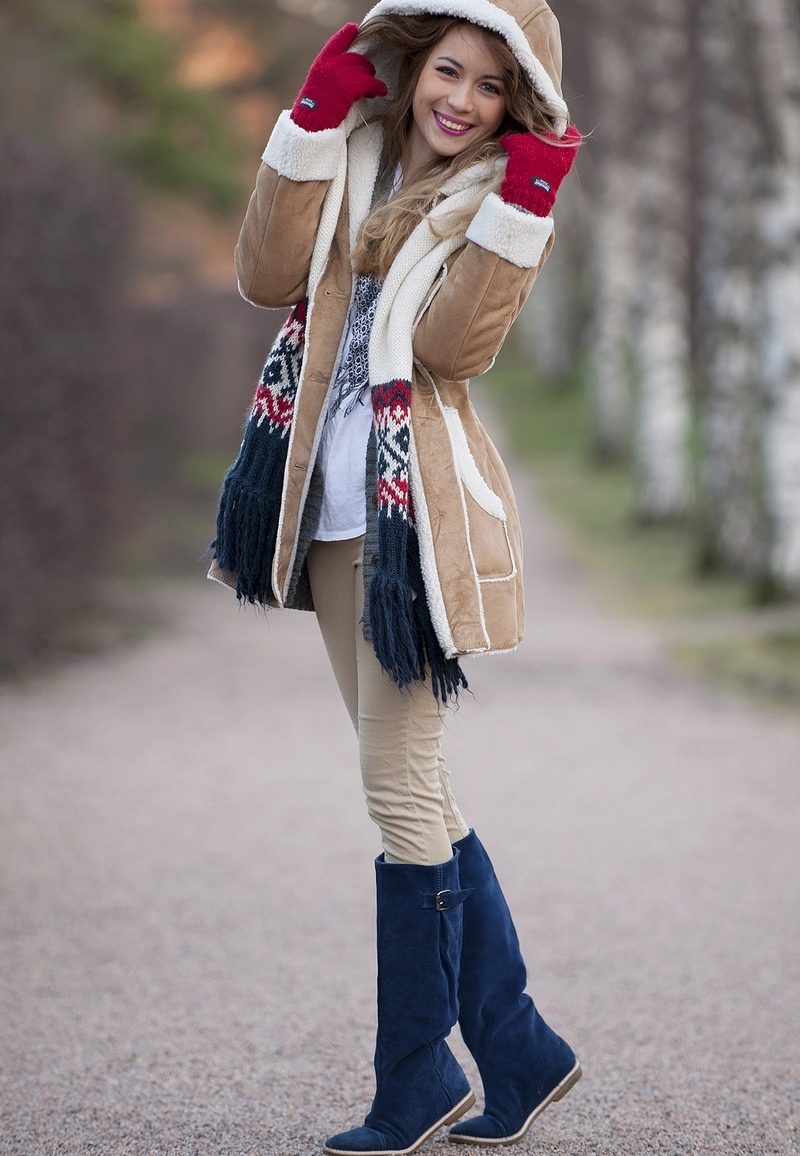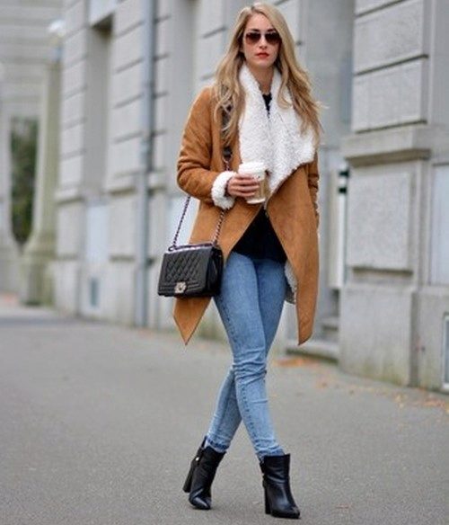 - Very short sheepskin coats are superbly complemented by skinny jeans and ugg boots, warm sneakers or boots. Wonderfully complement the image surround scarf-LIC.