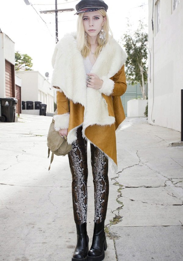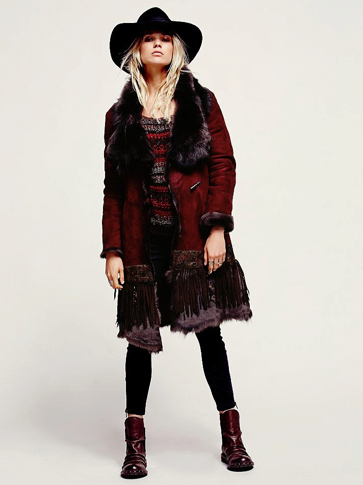 - In the boho style - a spectacular combination of the incongruous, which gives both convenience and the possibility of creating an attractive image. Artistic, outrageous, unlike any other - in a sheepskin coat, made in this style, you are guaranteed to be the center of attention.