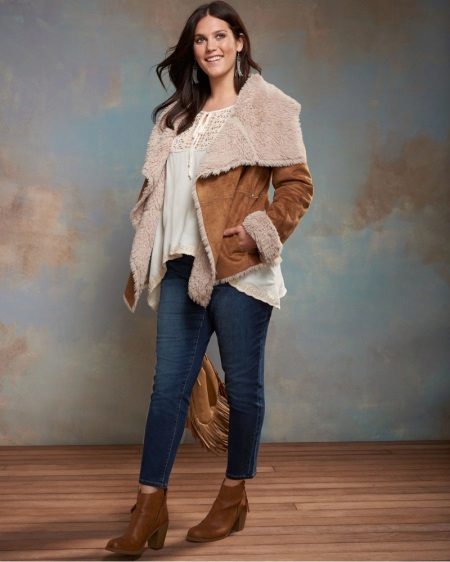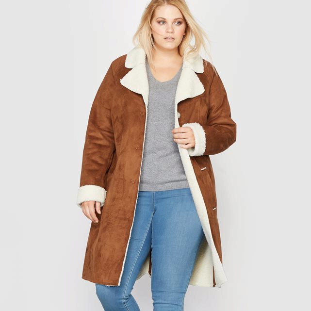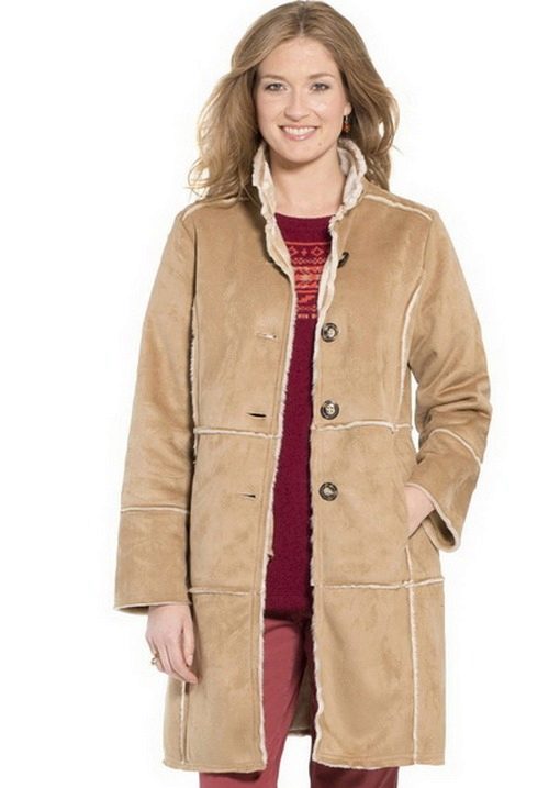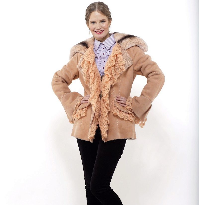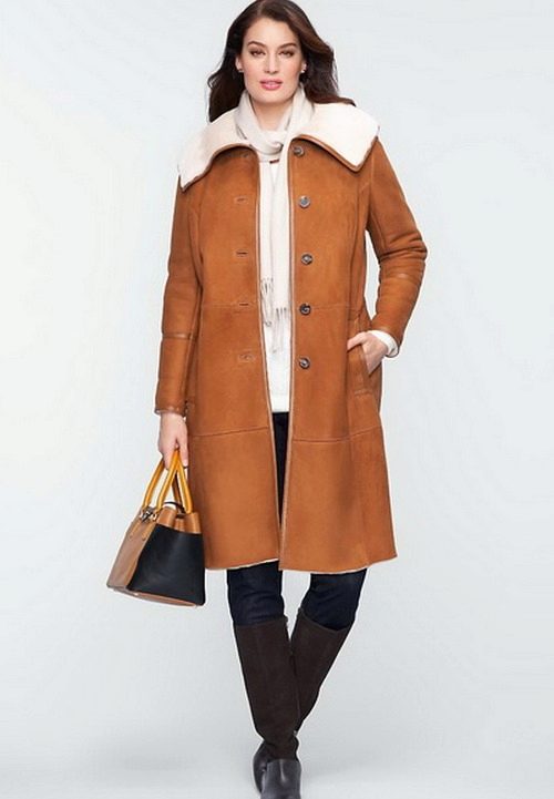 The only thing that should be considered for ladies with volumes is that you should not wear short types of sheepskin coats, they can expand the already rather big hips and abdomen area. The most versatile and traditional, almost win-win, option in this case is a sheepskin coat of straight cut, knee-length or slightly lower.