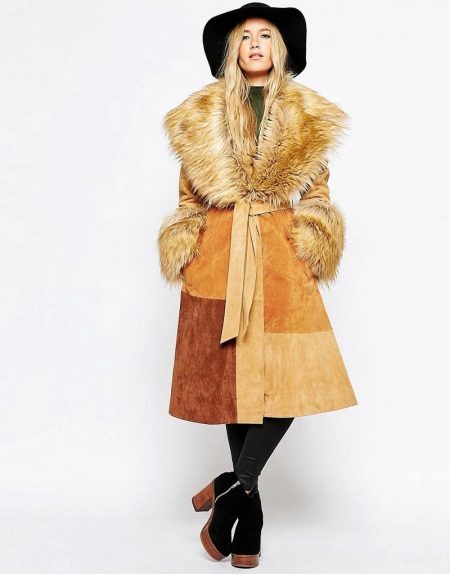 - Artificial material, imitating leather or suede - the so-called eco-sheepskin coat.