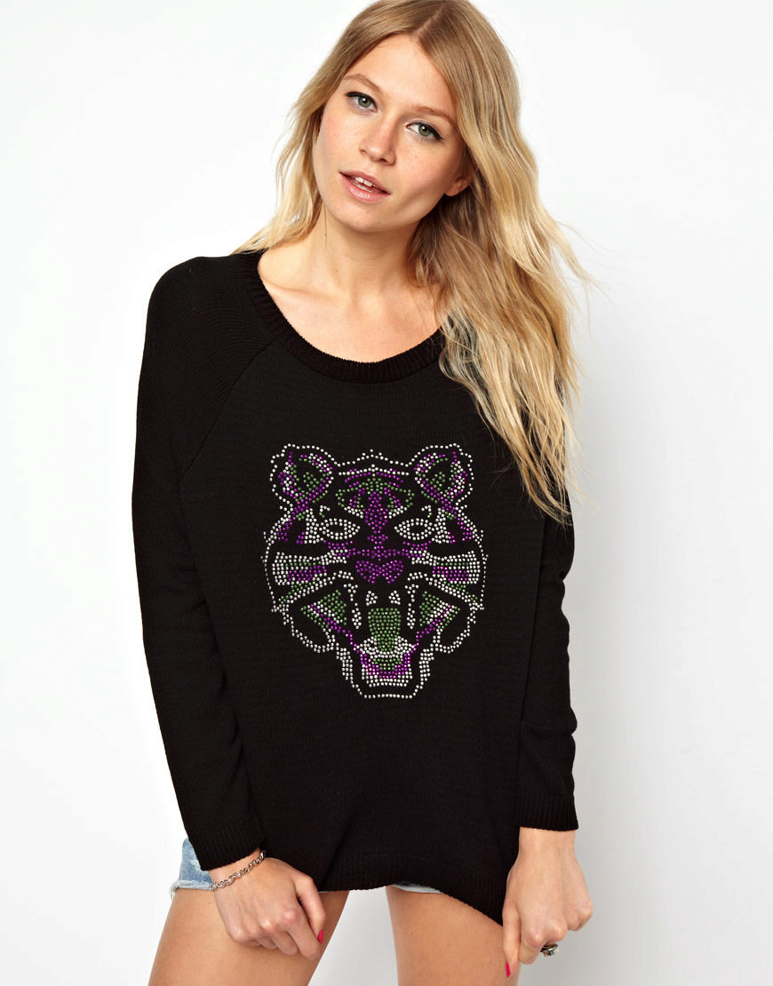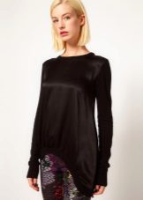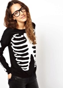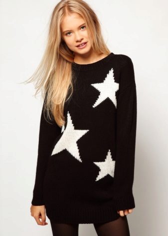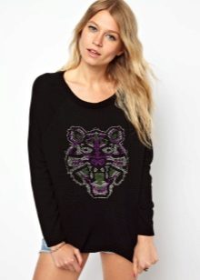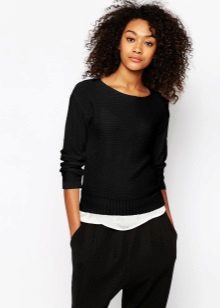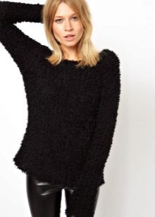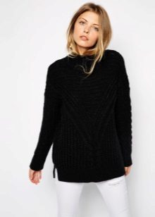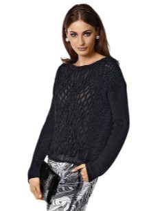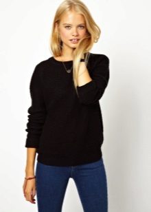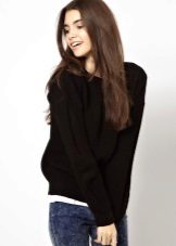 Of course, black jumpers are not only monotonous. They are often decorated with trendy prints, inscriptions, rhinestones, sewn beads and other details. Elegant options - is the use of shiny threads when knitting.