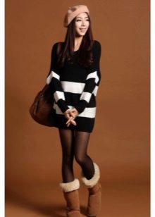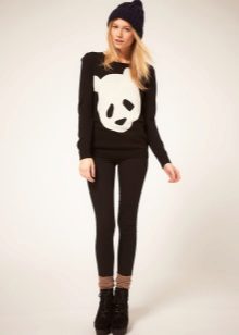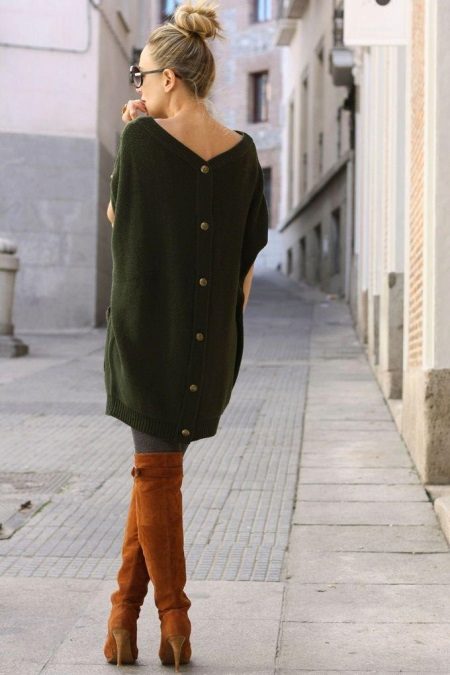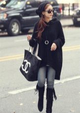 If you choose an elongated sweater, it can be worn with leggings. This is a cozy set for walks or trips in the countryside. Complement the look with high boots or ankle boots.