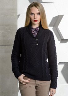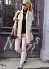 You can wear a jumper in everyday life, combining with a lot of things. It can be jeans of any model - classic or worn. And there can be trousers - skinny models or skinny models. Footwear - both on heels, and on a flat sole, and also in sports style.