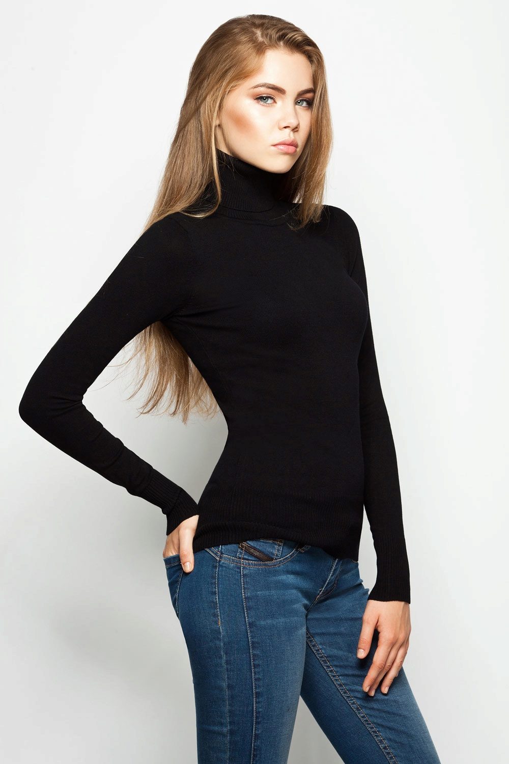 However, it does not have to be the usual classic colors, the black jumper also looks great in combination with bright wardrobe items.