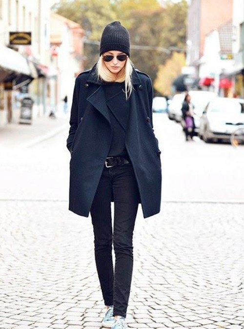In the cold season, you can wear a coat, trench coat or jacket from above. Not be superfluous contrast scarf.