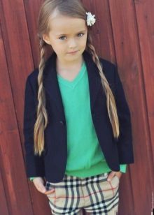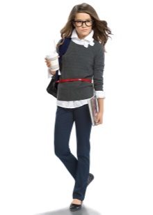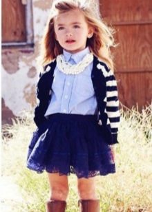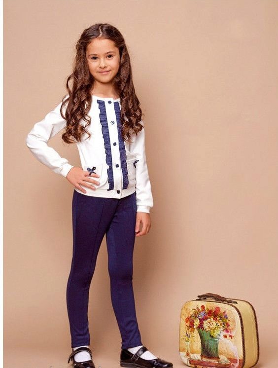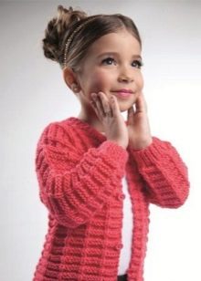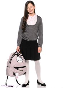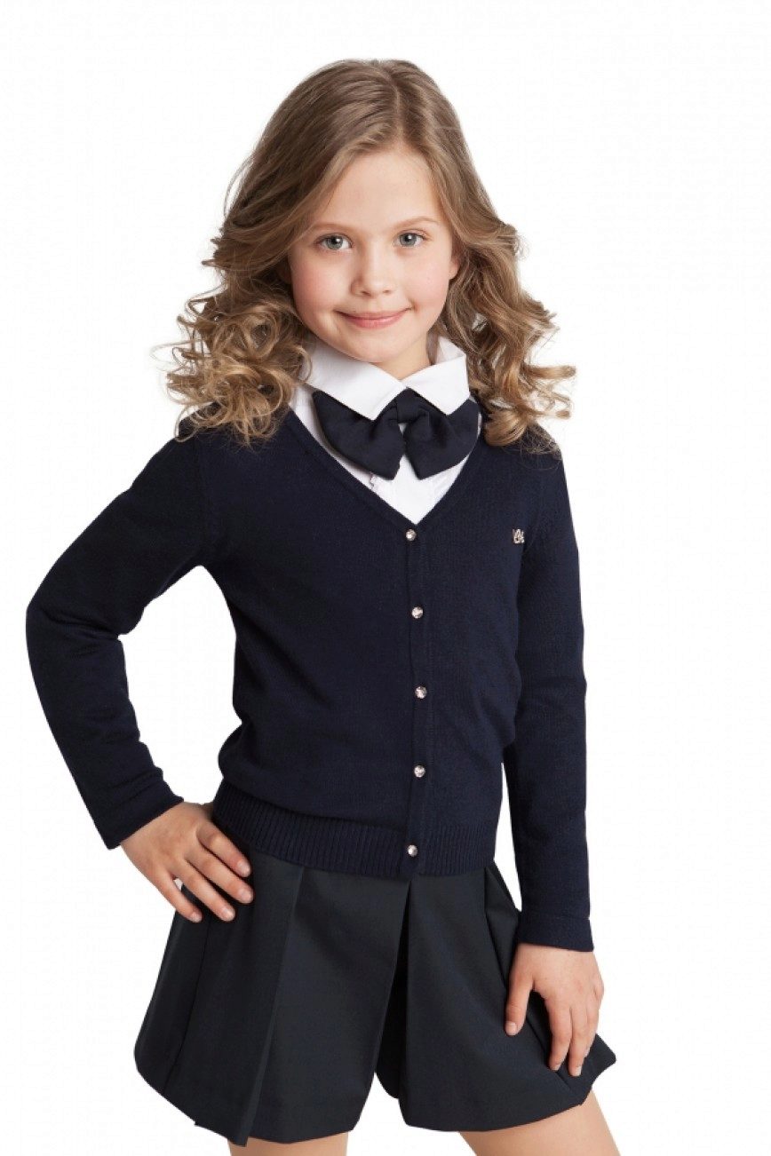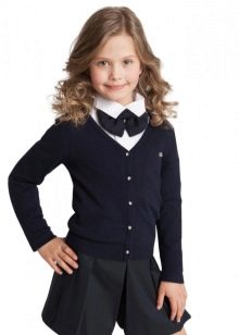 A buttoned jumper during the cold season can partially fulfill the functions of a school jacket. He looks good with shirts, blouses and turtlenecks, in addition, it is easy to take off and put on without damaging his hair.