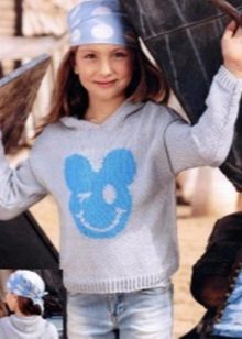 With the help of a pair of knitting needles, warmer and denser models are created. On the needles you can knit complex patterns, such as braids or zigzags. And if your child likes jumpers with ethnic ornaments, snowflakes, deer and other "winter" patterns, then the spokes are perfect for creating such a thing.
