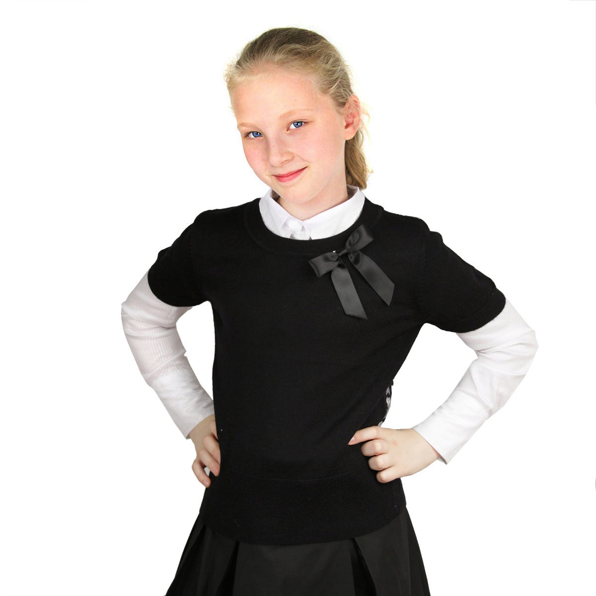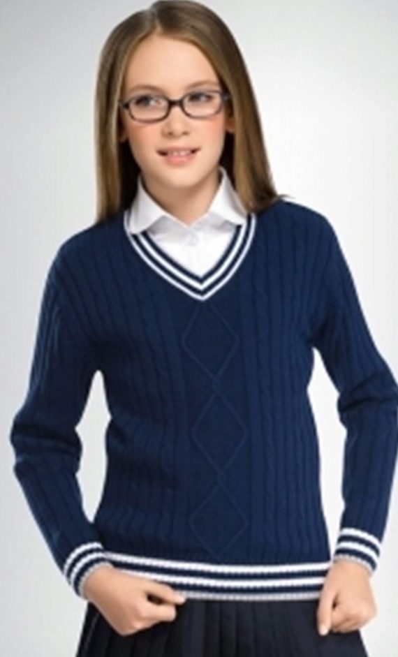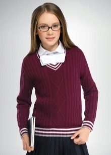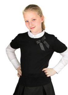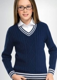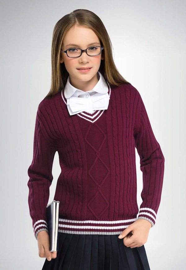 Jumper for girls can be a convenient and functional element of the school uniform, interchangeable with the vest and jacket. School models usually have the simplest and most concise design: they are made in one or two colors, have a classic silhouette, and of the elements of such jumpers there is usually only a patch with the emblem of the school.