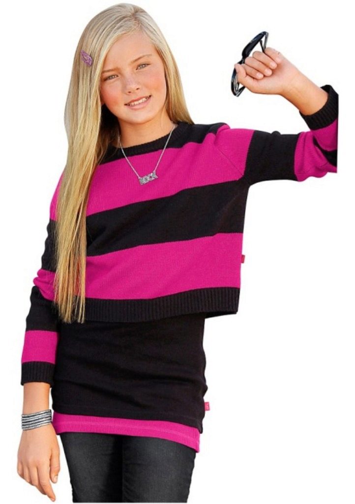 The range of jumpers for teenage girls is very diverse. At this age, children are already beginning to understand fashion trends and develop their own taste preferences, and the task of parents is not to hinder them in this, but to help shape a good taste in clothes. Teenage models borrow many elements of the “adult” fashion, but they still remain more vivid and spontaneous.