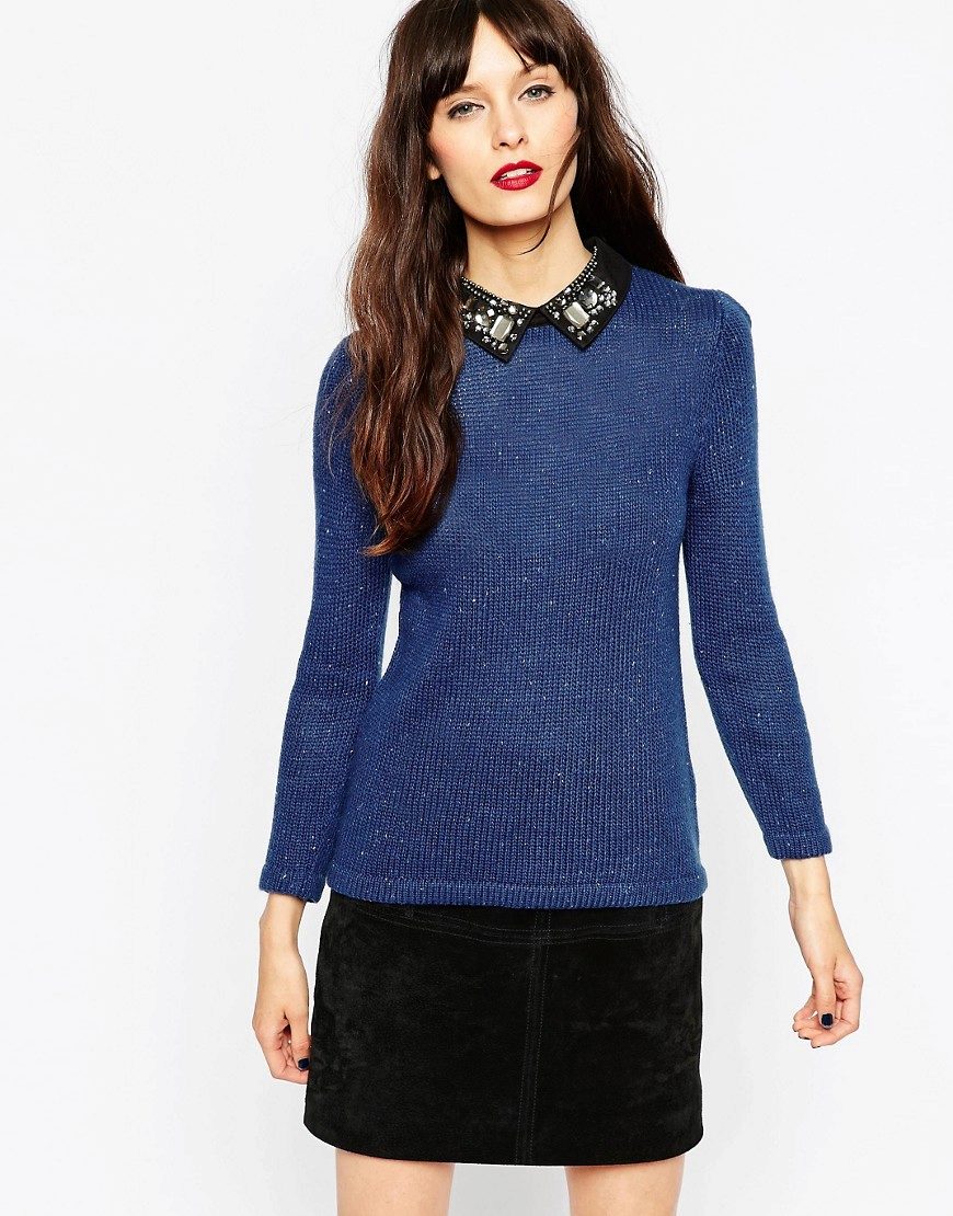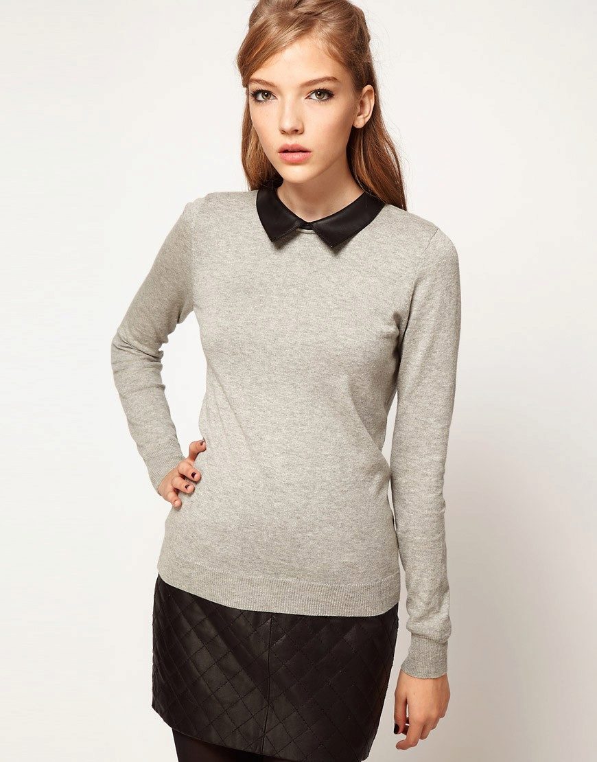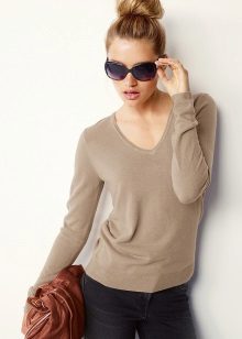 - Neckline. A very popular women's V-neck sweater. It will fit any shape, visually make a woman slimmer and stretch the silhouette. Round, square cuts, models with a collar like polo shirts are in great demand.