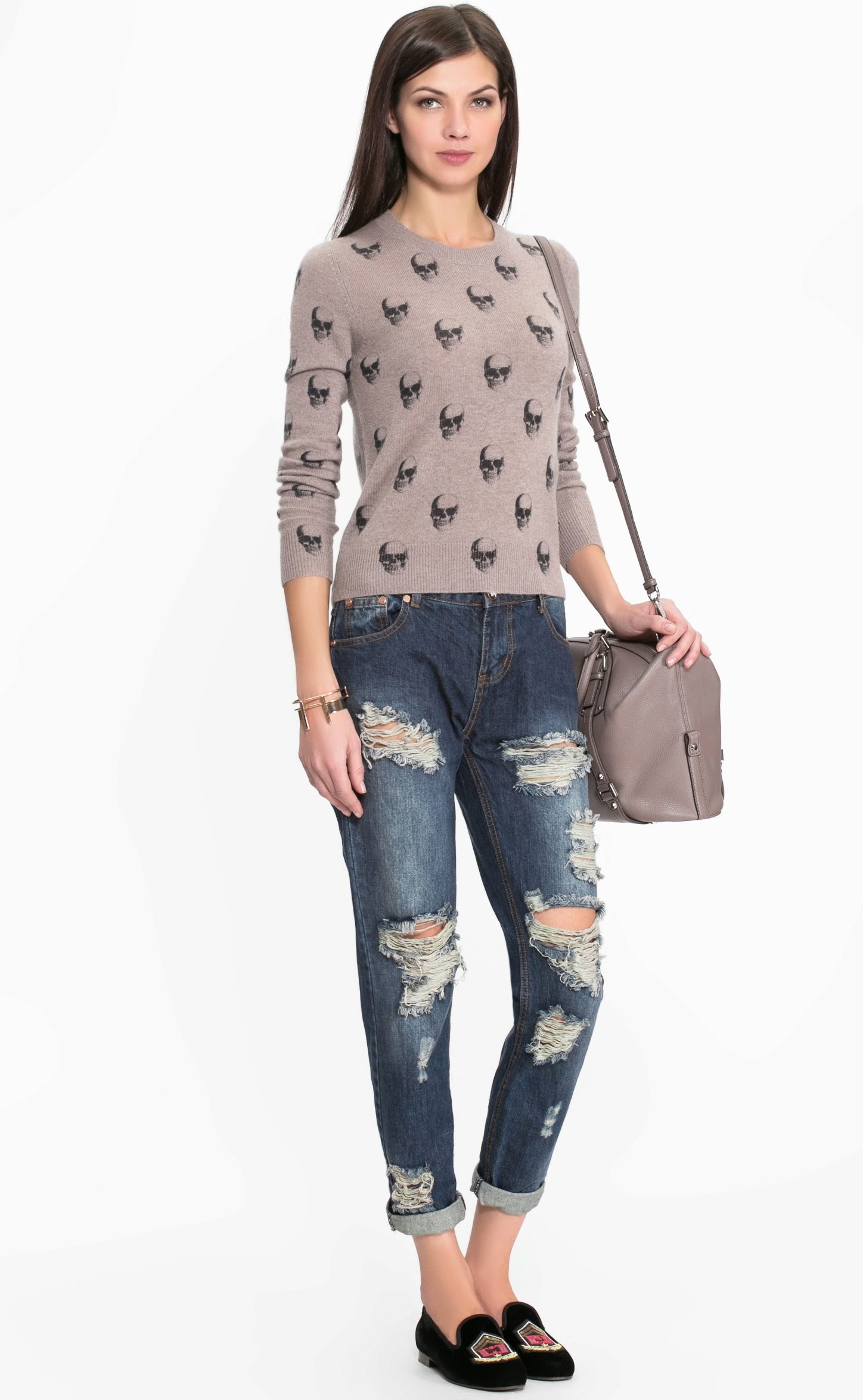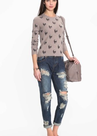 - Casual image. You always want to look stylish, but without sacrificing comfort. A cashmere sweater will help. To him add tight jeans, comfortable shoes on a flat course, a bag over his shoulder and massive jewelry - outfit for walking, shopping, going to the movies ready.